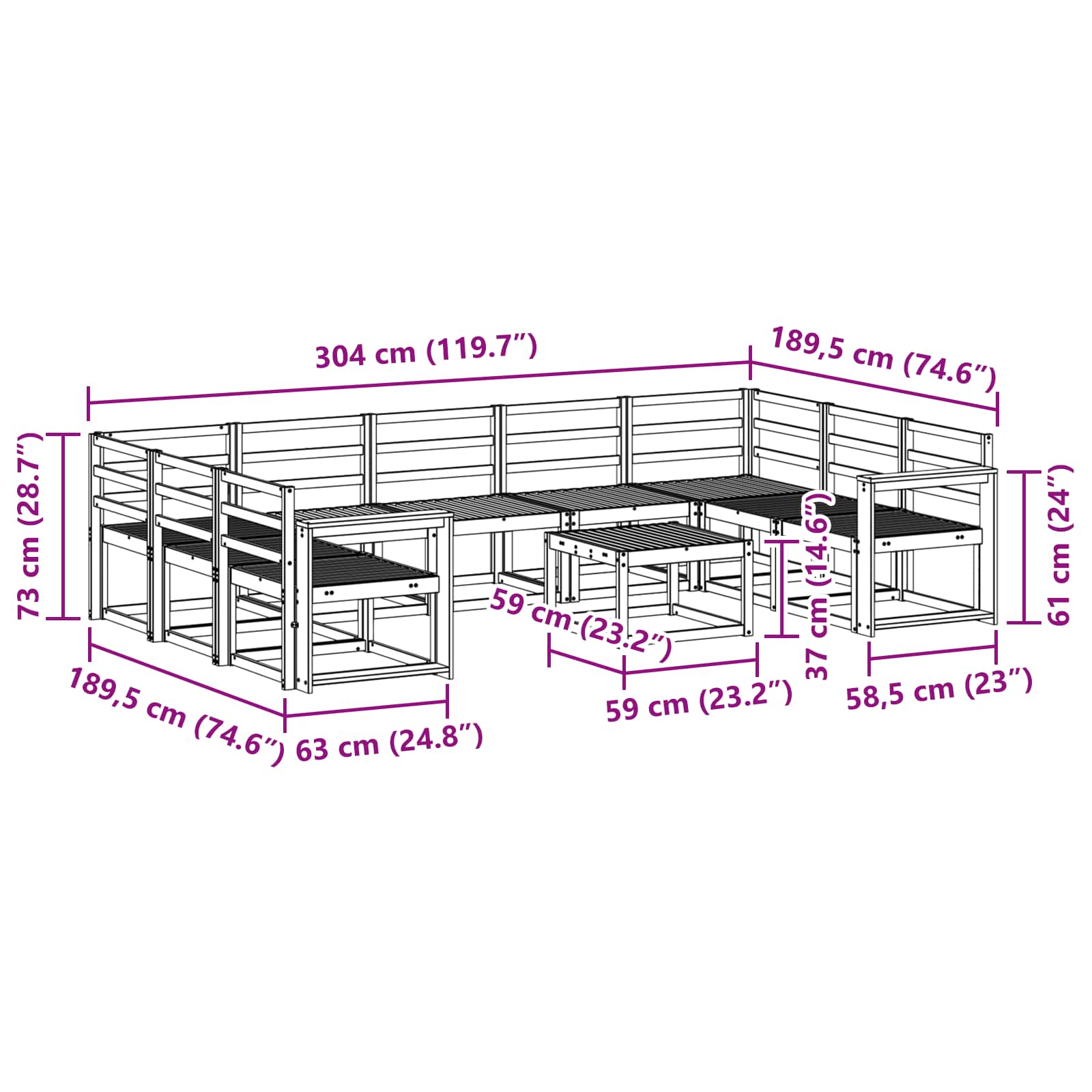 Ulkosohvakokoelma 10 pcs Luonnollinen Tiheä akasiapuu