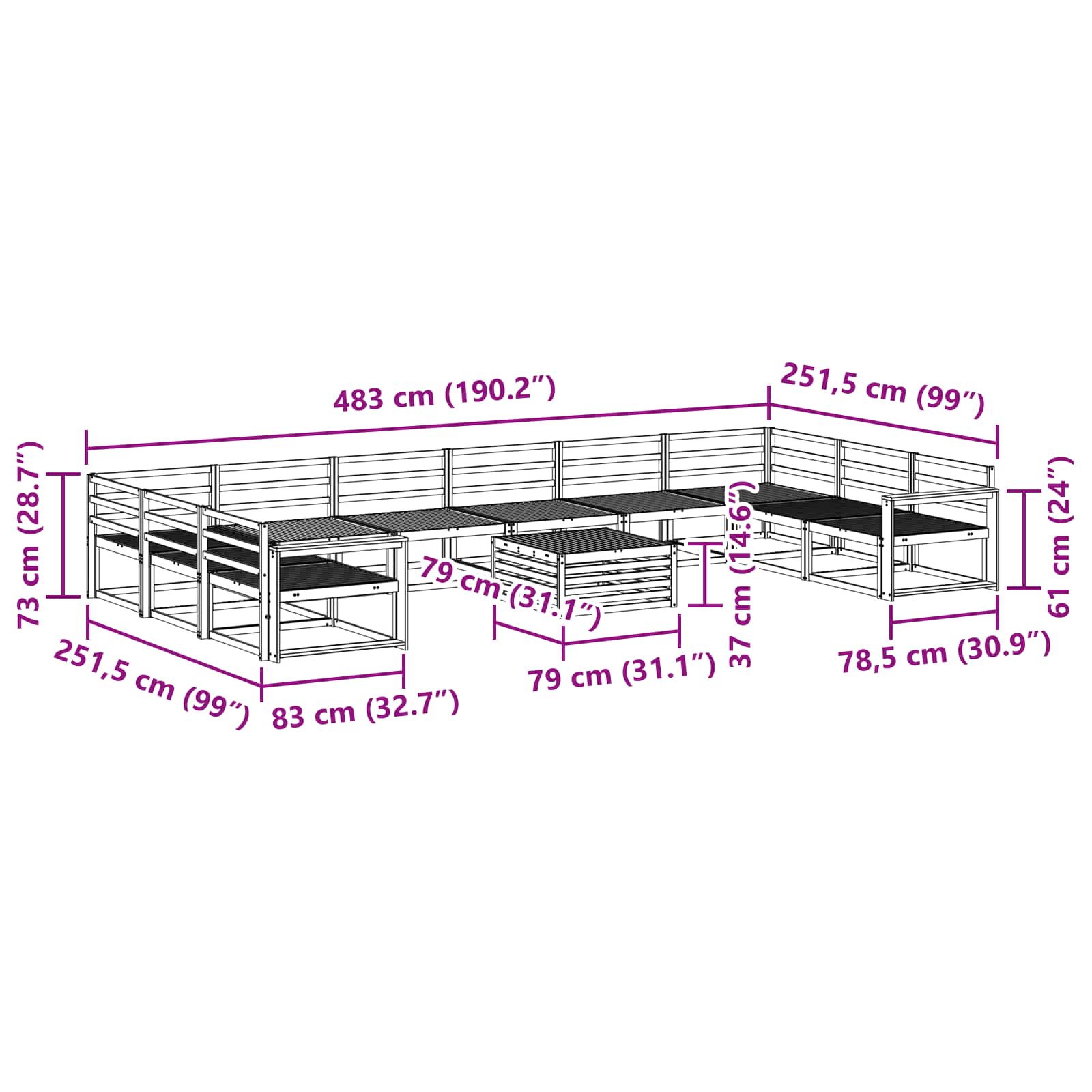 Ulkosohvakokoelma 11 pcs Luonnollinen Tiheä akasiapuu