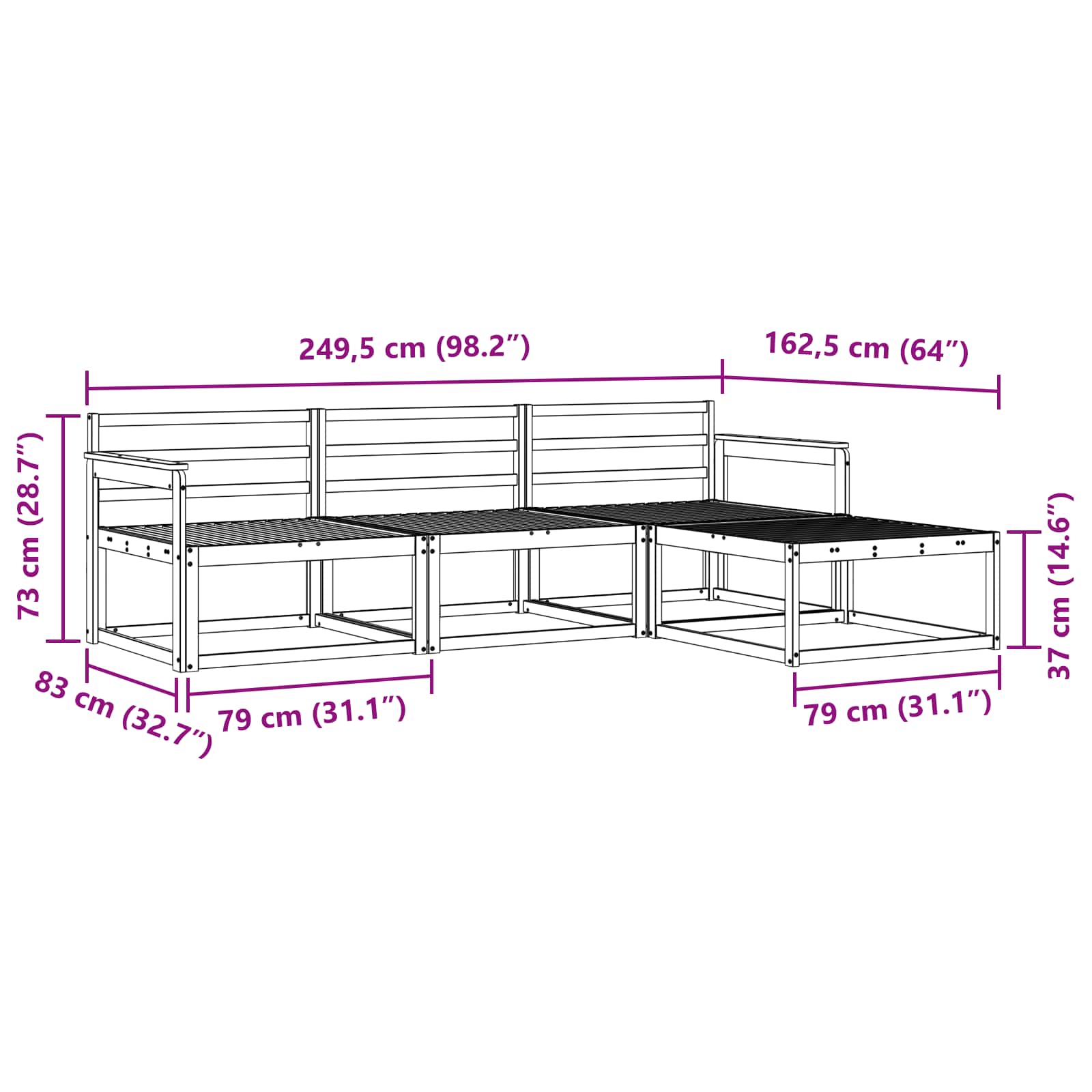 • 3 x Keskisohva: 79 x 83 x 73 cm (P x L x K)