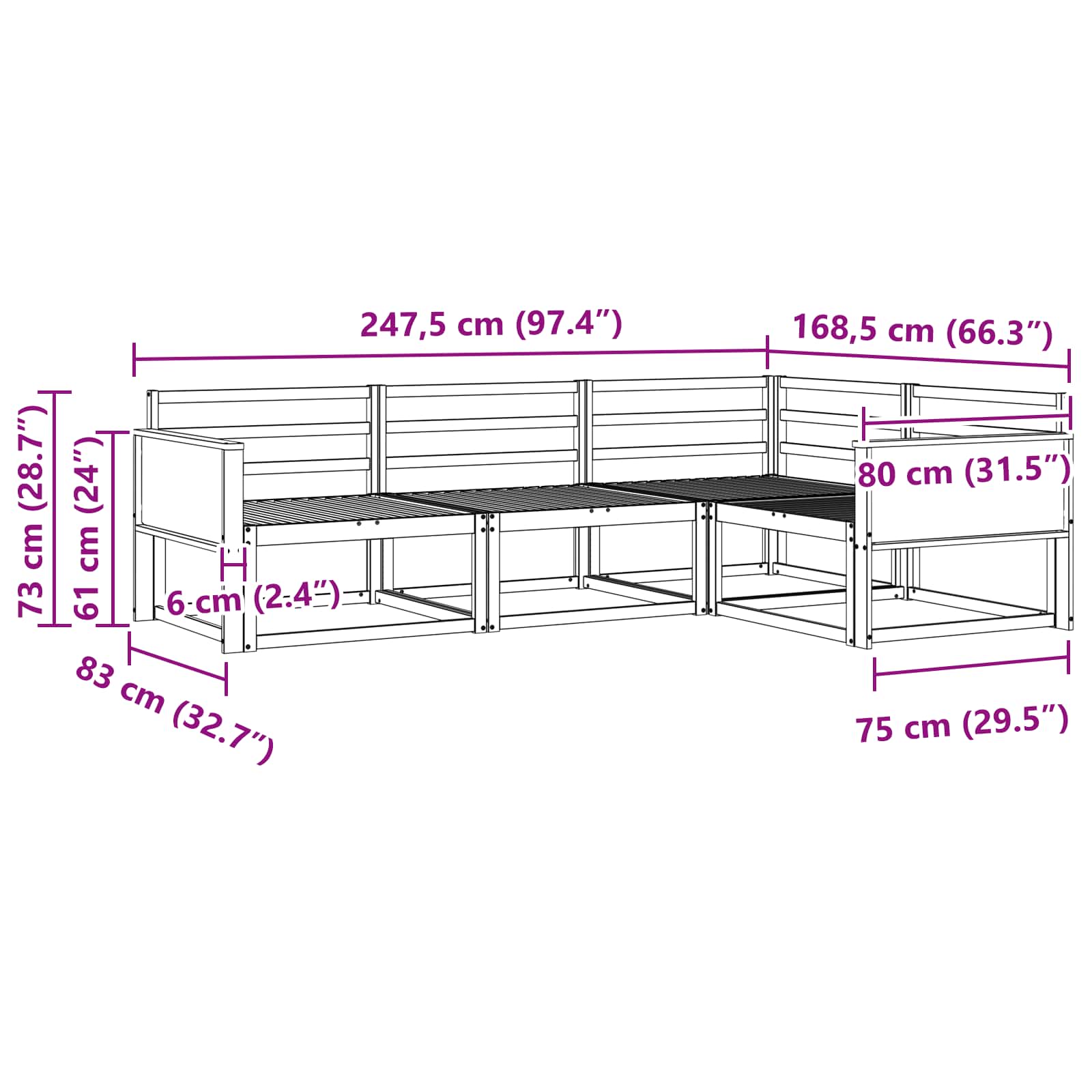 • Yleiset mitat: 247,5 x 168,5 x 73 cm (P x L x K)