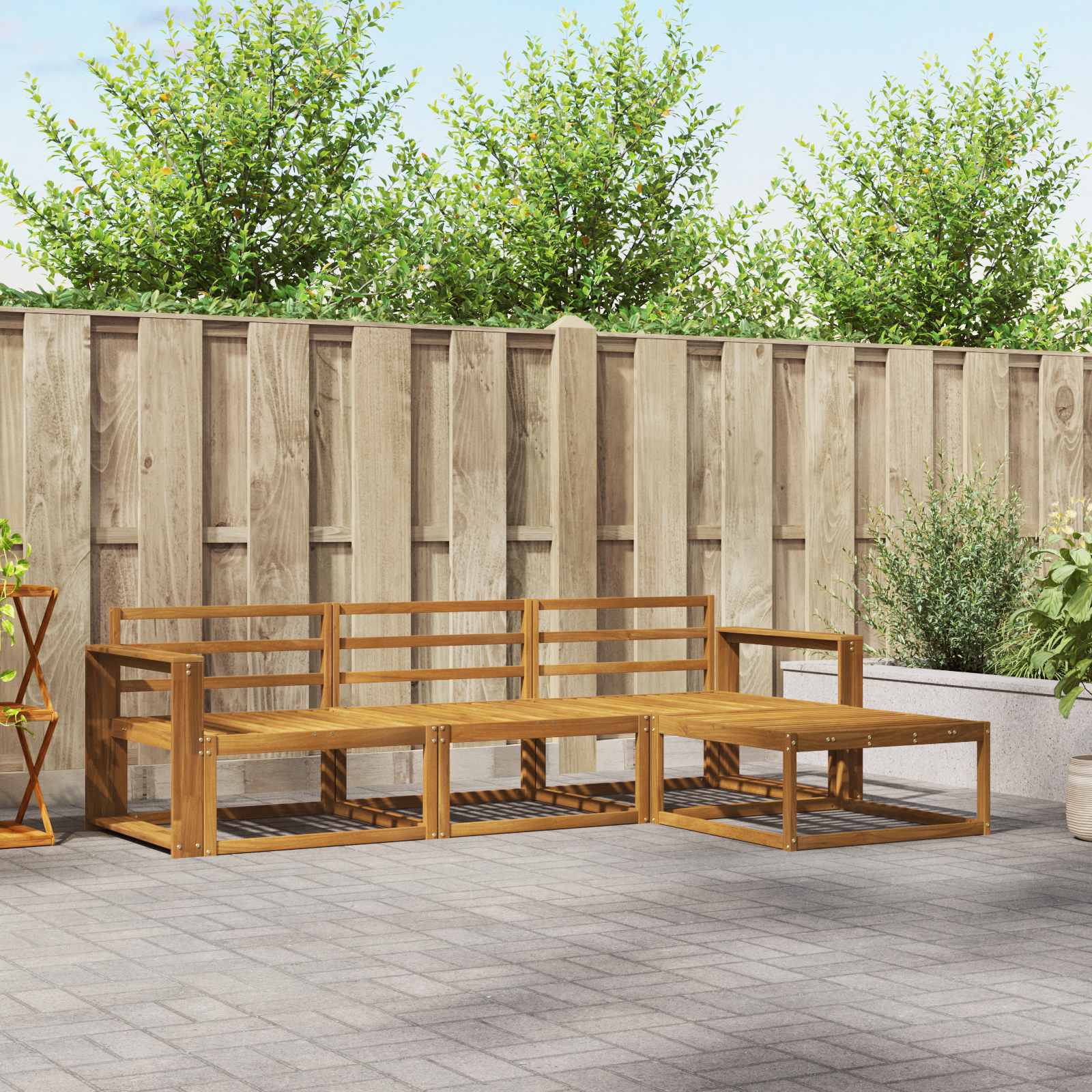 Ulkosohvakokoelma 4 pcs Luonnollinen Tiheä akasiapuu