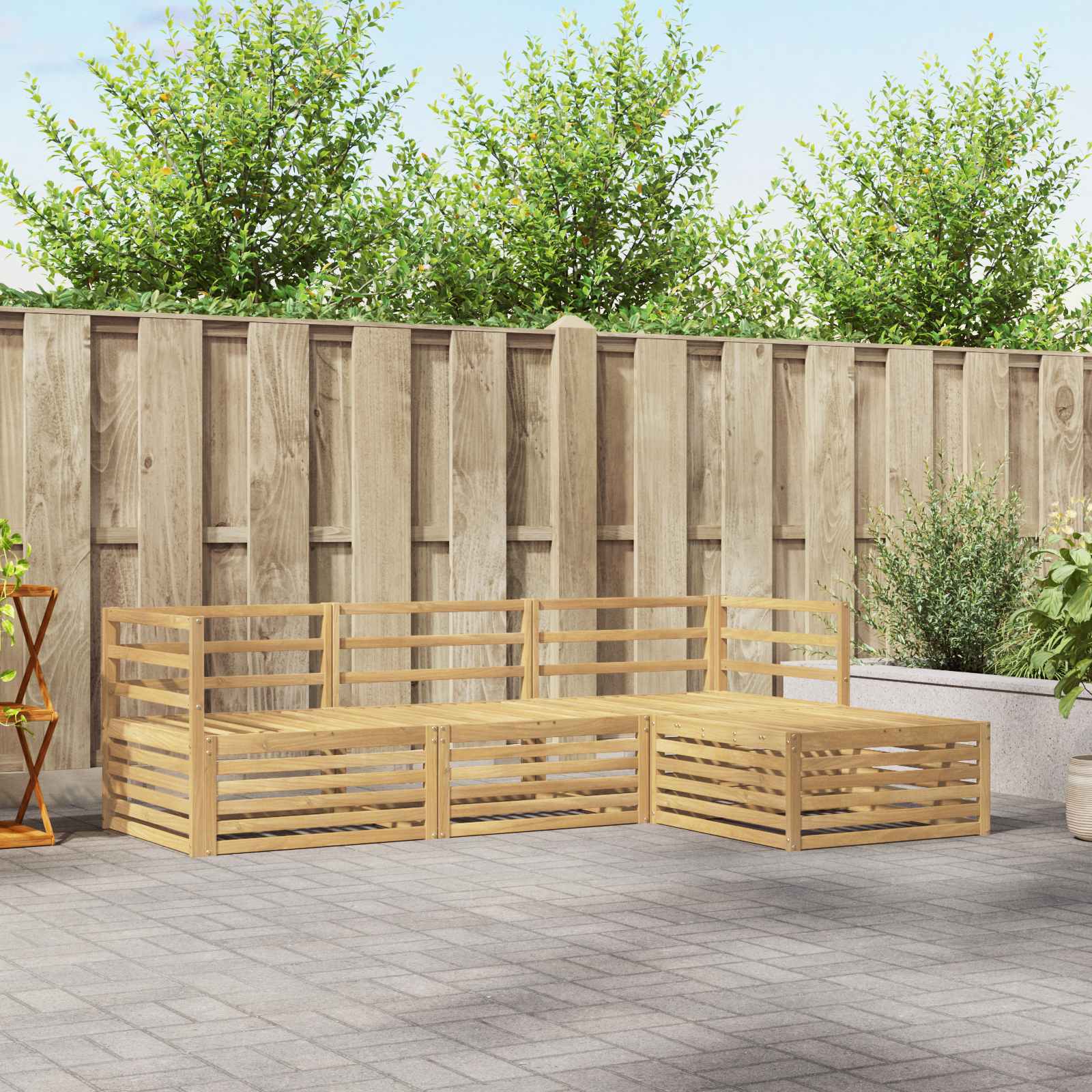 Ulkokalustesetti yhdistää tyylin ja käytännöllisyyden, luoden upean keskipisteen jokaiselle puutarhalle tai terassille. Sen moderni muotoilu, jossa on siistit viivat ja hillitty yksityiskohtaisuus, tuo eleganssia ja tukee rentoutumista ulkona ja sosiaalista yhdessäoloa. Valmistettu kestävästä akaasiapuusta, setti varmistaa pitkän käyttöiän ja visuaalista viehätystä, mikä tekee siitä täydellisen valinnan käytännöllisten ja tyylikkäiden ulkokalusteiden etsijöille.