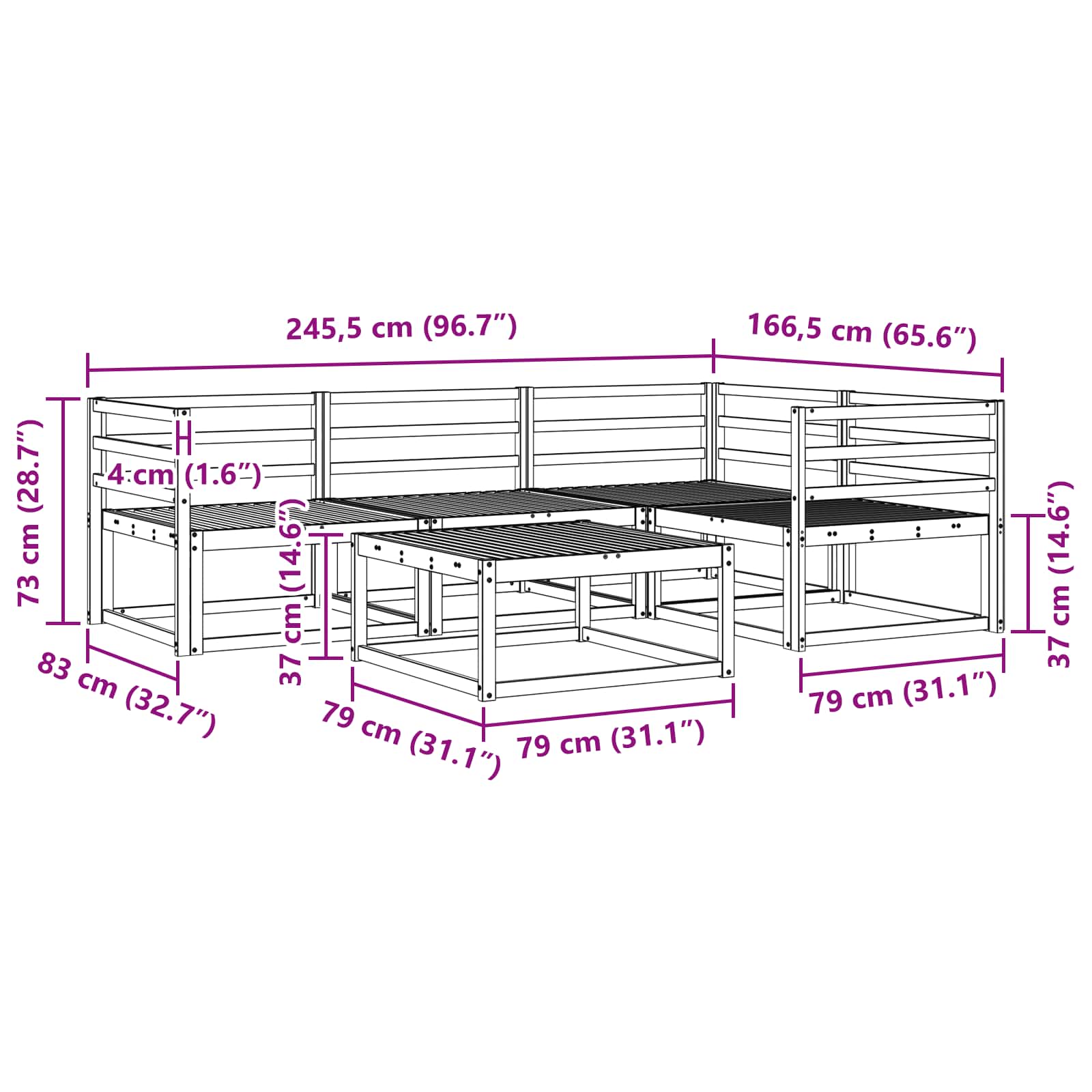 • 1 x Pöytä: 79 x 79 x 37 cm (PxLxK)