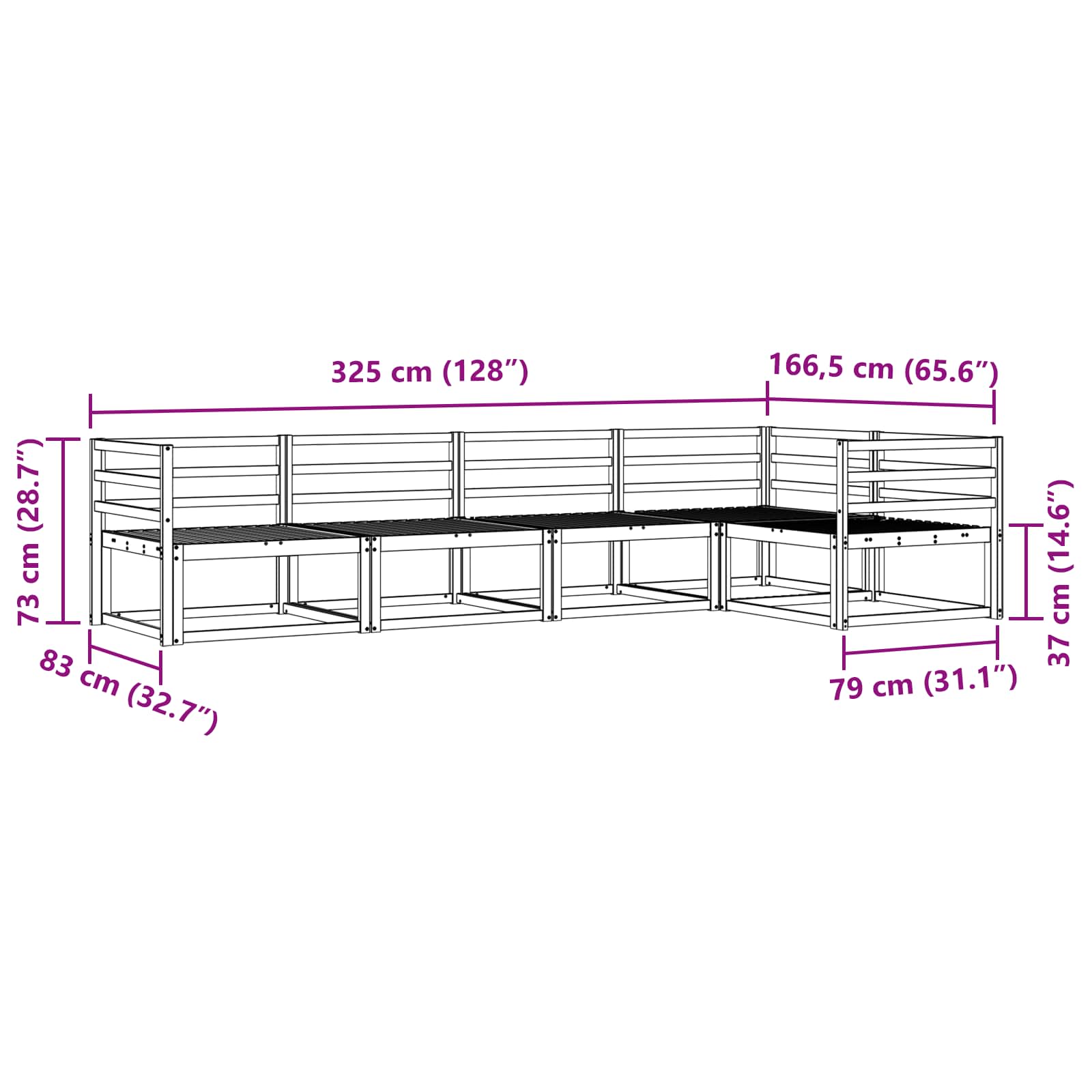 • Yleiset mitat: 325 x 166,5 x 73 cm (P x L x K)