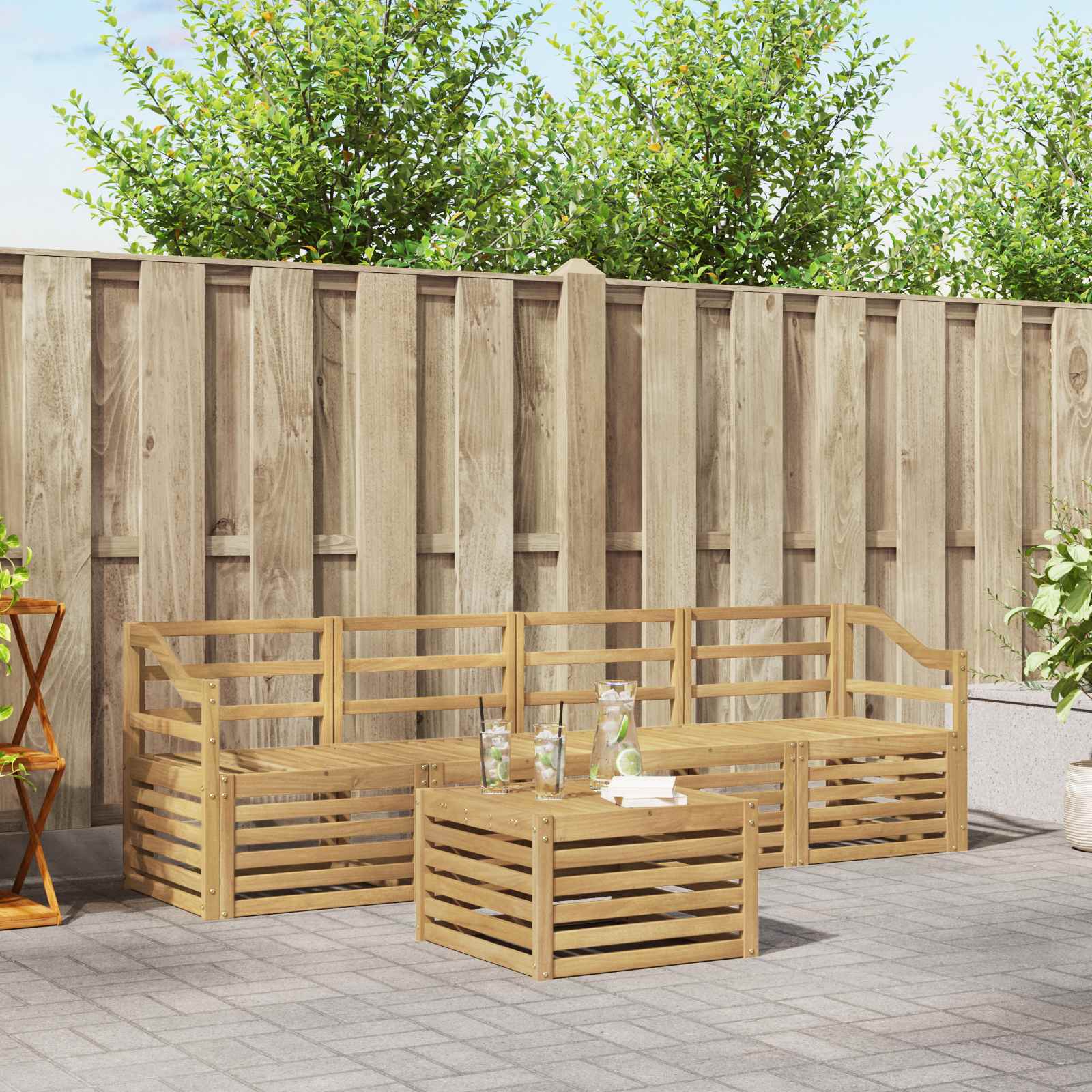 • Kestävä täysi akaasiapuu: Tämä ulkokalustesetti on valmistettu laadukkaasta kestävän akaasiapuun, joka takaa luotettavuutta ja kestävyyttä erilaisissa säänolosuhteissa. Vankka rakenne tarjoaa tukea ja vakautta, ja kaunis puunsävy tuo lisää viehätystä puutarhaasi tai terassillesi.