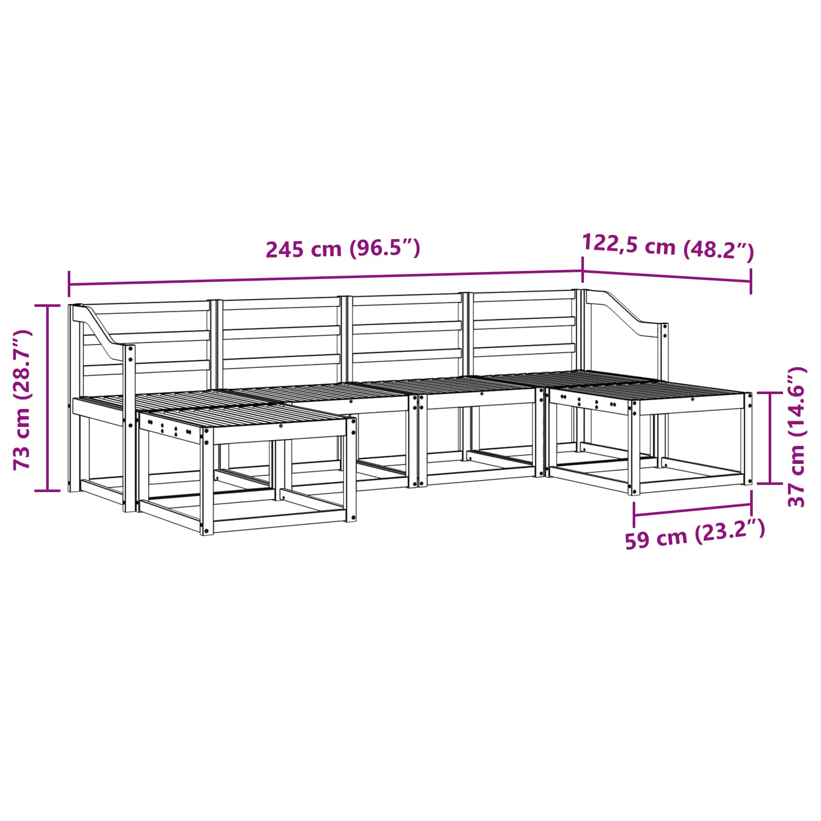 • 4 x Keskisohva: 59 x 63 x 73 cm (P x L x K)