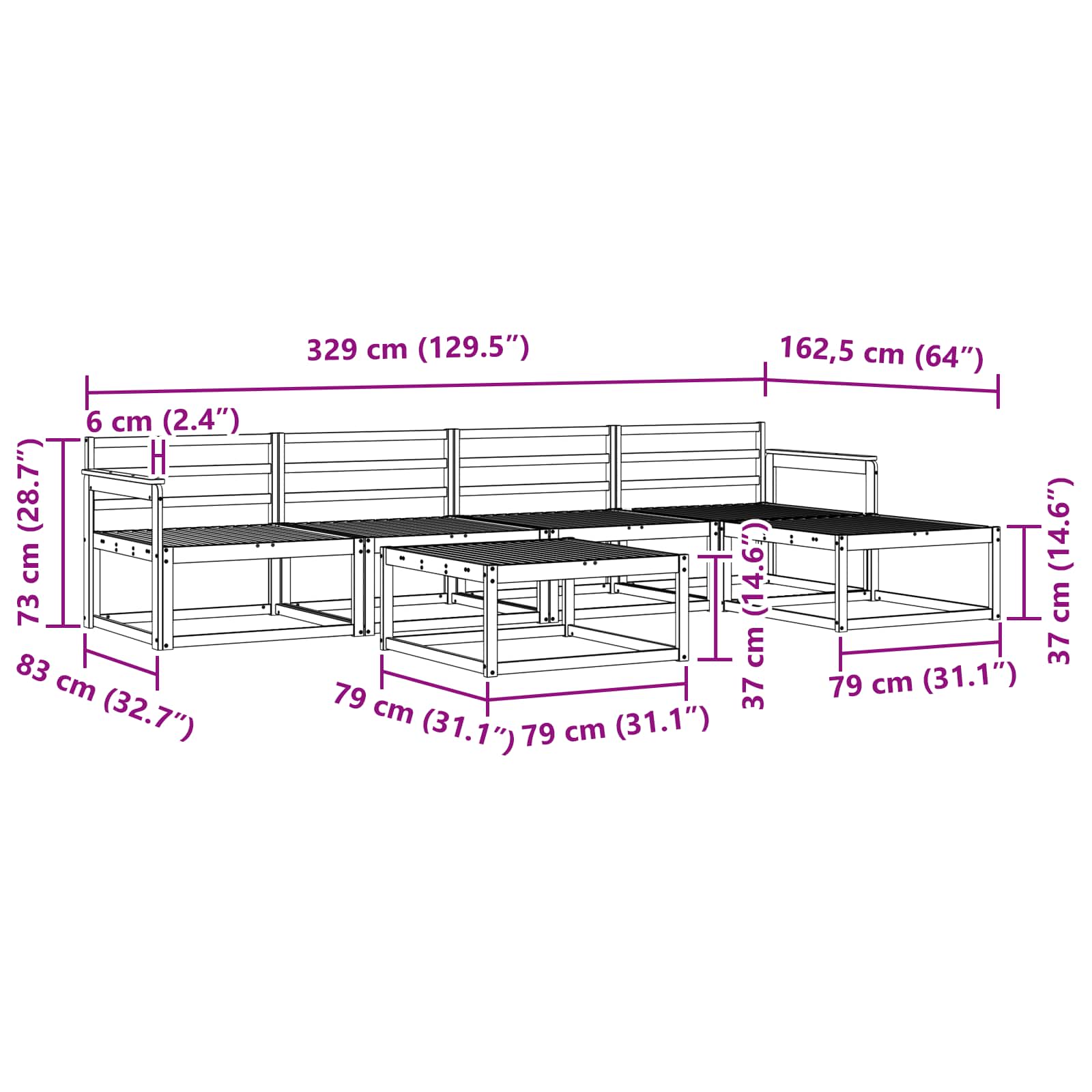Ulkosohvakokoelma 6 pcs Luonnollinen Tiheä akasiapuu