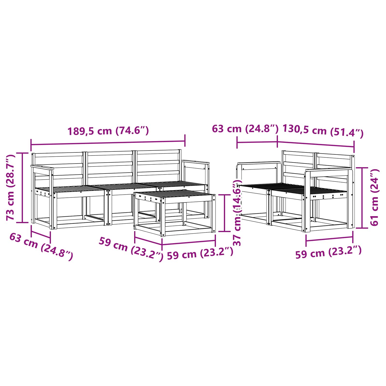 Ulkosohvakokoelma 6 pcs Luonnollinen Tiheä akasiapuu