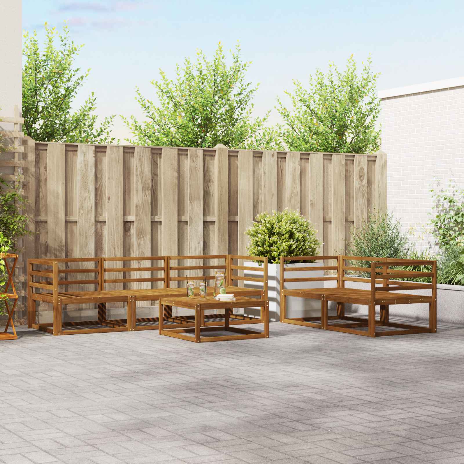 • Täysi akaasiapuu: Laadukkaasta akaasiapuusta valmistettu sohvasarja tuo esiin luonnollista kauneutta ja kestävyyttä. Tunnettu kestävyydestään ja kauniista puukuosistaan, akaasiapuu kestää sään vaikutuksia ja päivittäistä kulutusta, varmistaen pitkän käyttöiän ja kauniin ulkonäön ulkona. Puun luonnollinen kiilto lisää eleganssia ja vaatii vain vähän huoltoa, joten se on täydellinen valinta tyylin arvostajille.