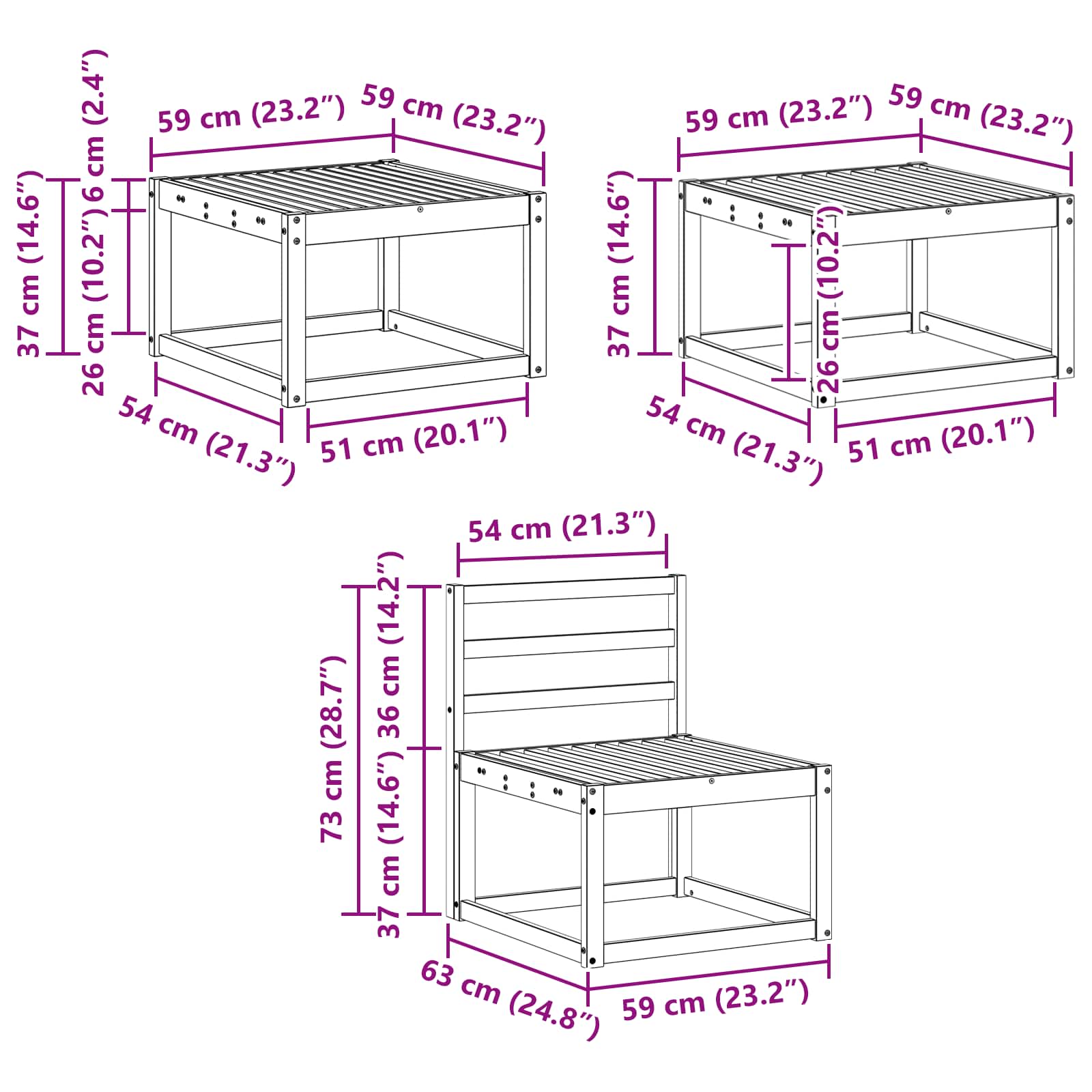• 4 x Keskisohva: 59 x 63 x 73 cm (P x L x K)