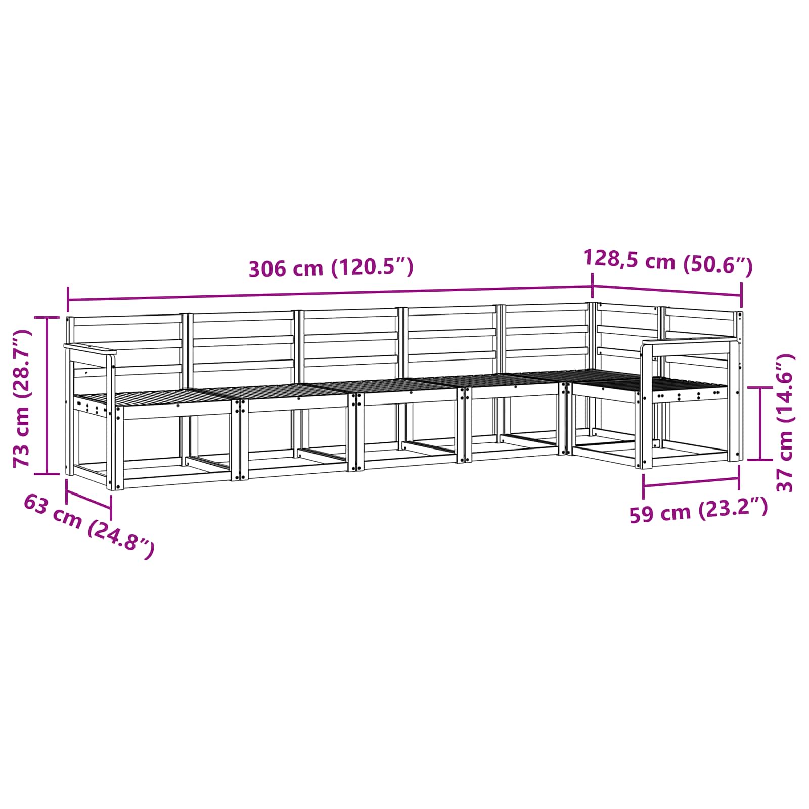 • Yleiset mitat: 306 x 128,5 x 73 cm (P x L x K)