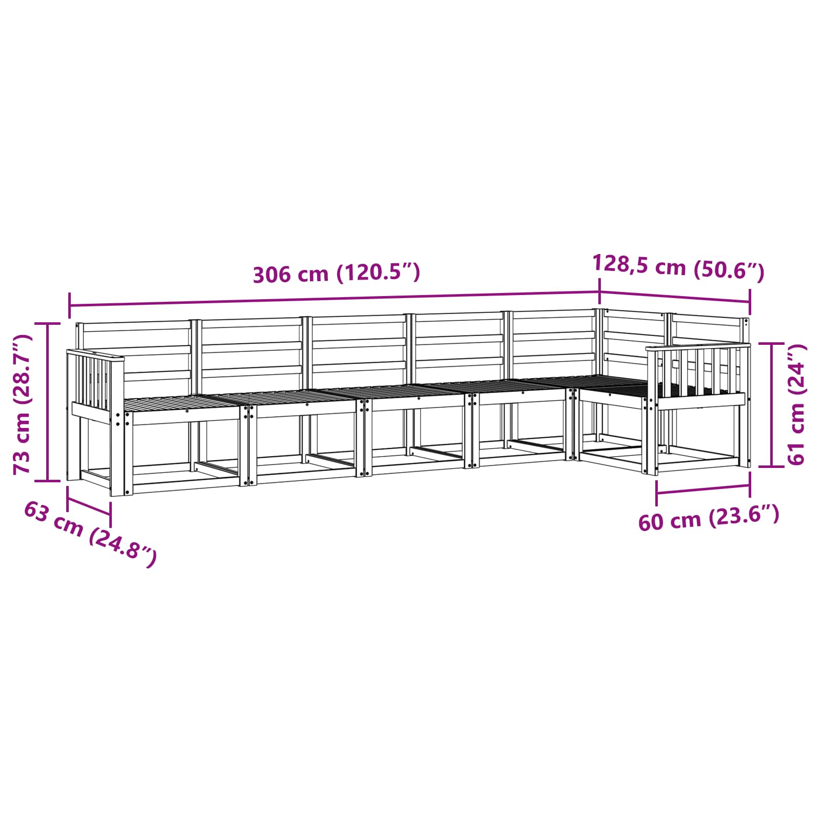 • Yleiset mitat: 306 x 128,5 x 73 cm (P x L x K)