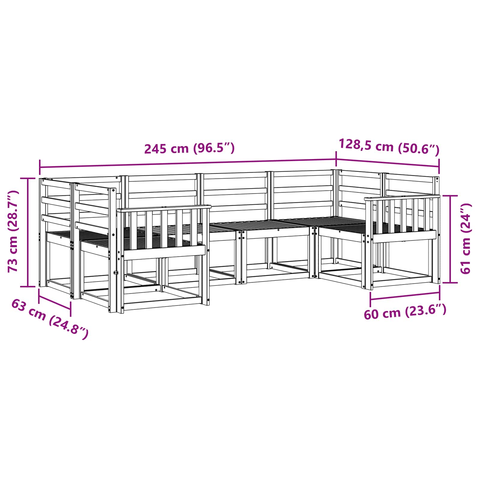 • 4 x Keskisohva: 59 x 63 x 73 cm (P x L x K)