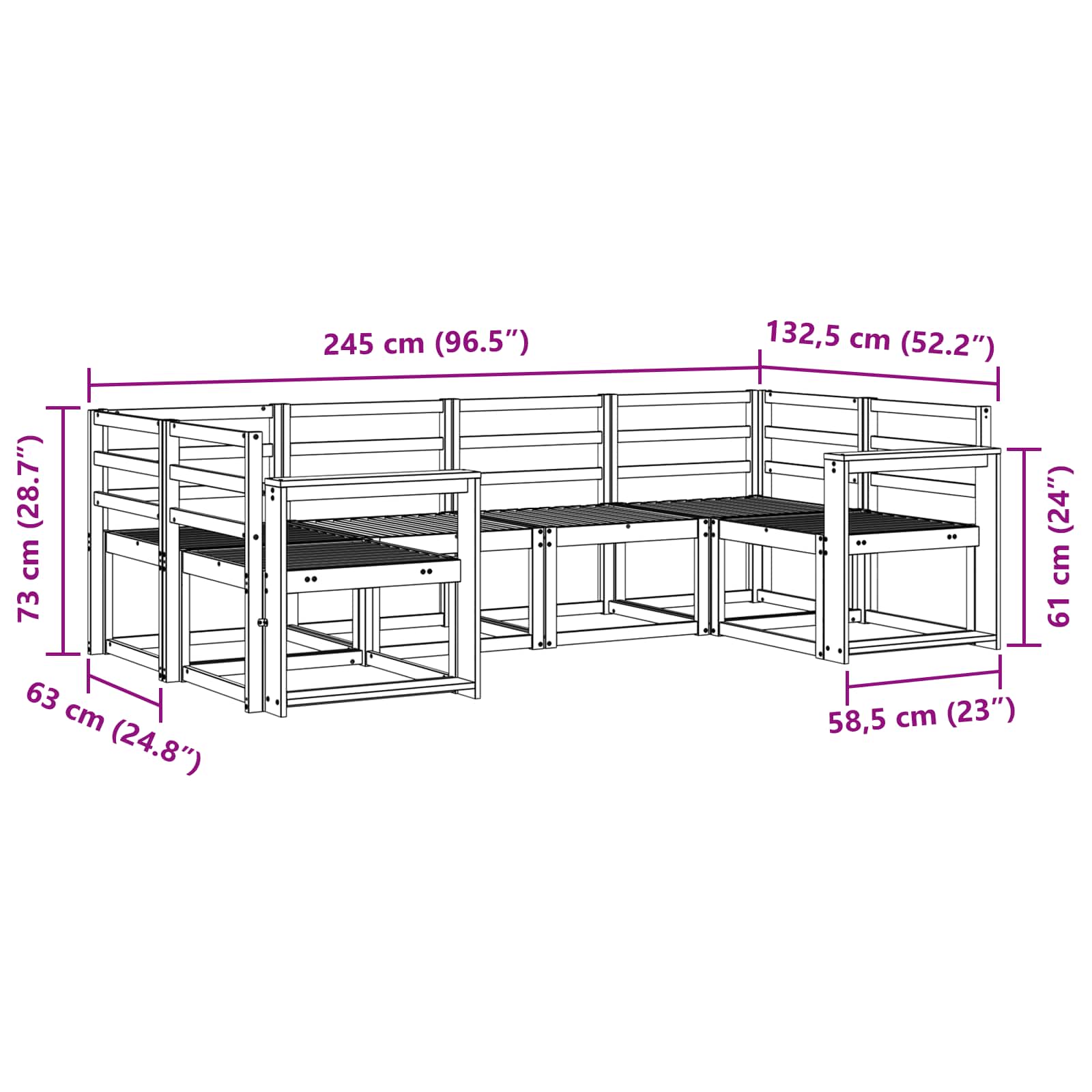 • Yleiset mitat: 245 x 132,5 x 73 cm (P x L x K)
