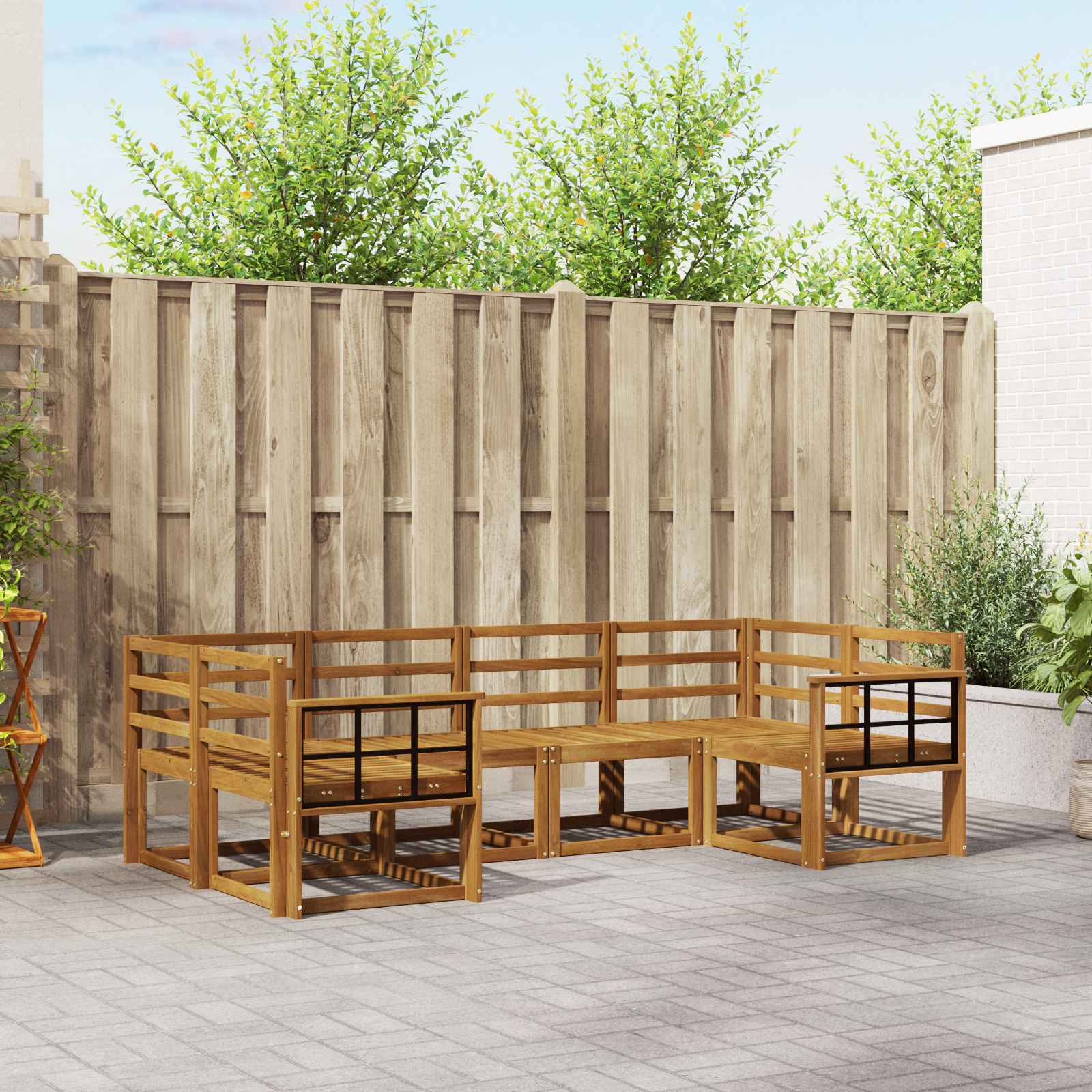 • Kestävä rakenne: Valmistettu täysistä akaasiapuista, tämä sohvasetti kestä ulkoilman rasituksia, joten voit nauttia siitä ympäri vuoden. Akaasiapuu on kestävä ja kaunis, joten se toimii käytännöllisesti ja houkuttelevasti.
