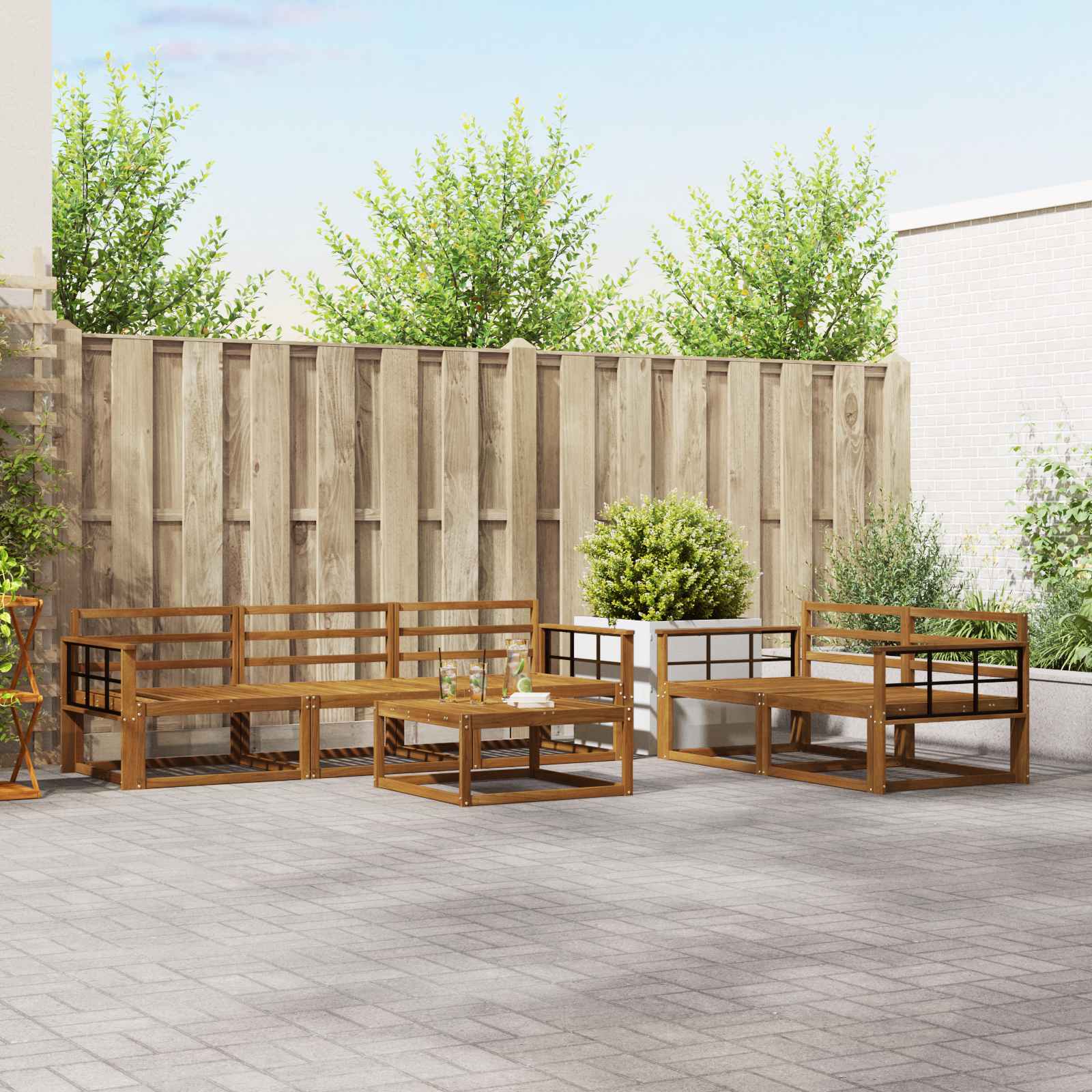 • Täysi akaasiapuu: Laadukkaasta akaasiapuusta valmistettu sohvasarja tuo esiin luonnollista kauneutta ja kestävyyttä. Tunnettu kestävyydestään ja kauniista puukuosistaan, akaasiapuu kestää sään vaikutuksia ja päivittäistä kulutusta, varmistaen pitkän käyttöiän ja kauniin ulkonäön ulkona. Puun luonnollinen kiilto lisää eleganssia ja vaatii vain vähän huoltoa, joten se on täydellinen valinta tyylin arvostajille.