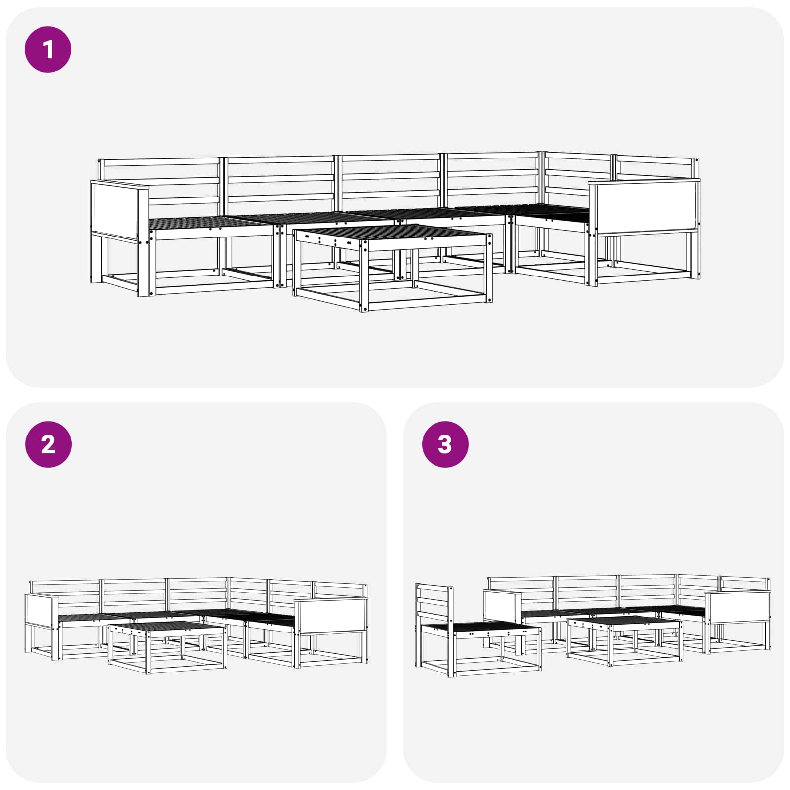 • Joustava rakenne: Sohvasetin modulaarisuus mahdollistaa helpon järjestelyn erilaisten tapahtumien mukaan. Olitpa viihdyttämässä vieraita puutarhassa tai nauttimassa rauhallisista hetkistä yksin, moduulien muokkaaminen antaa tuotteen erinomaisen mukautuvuuden.