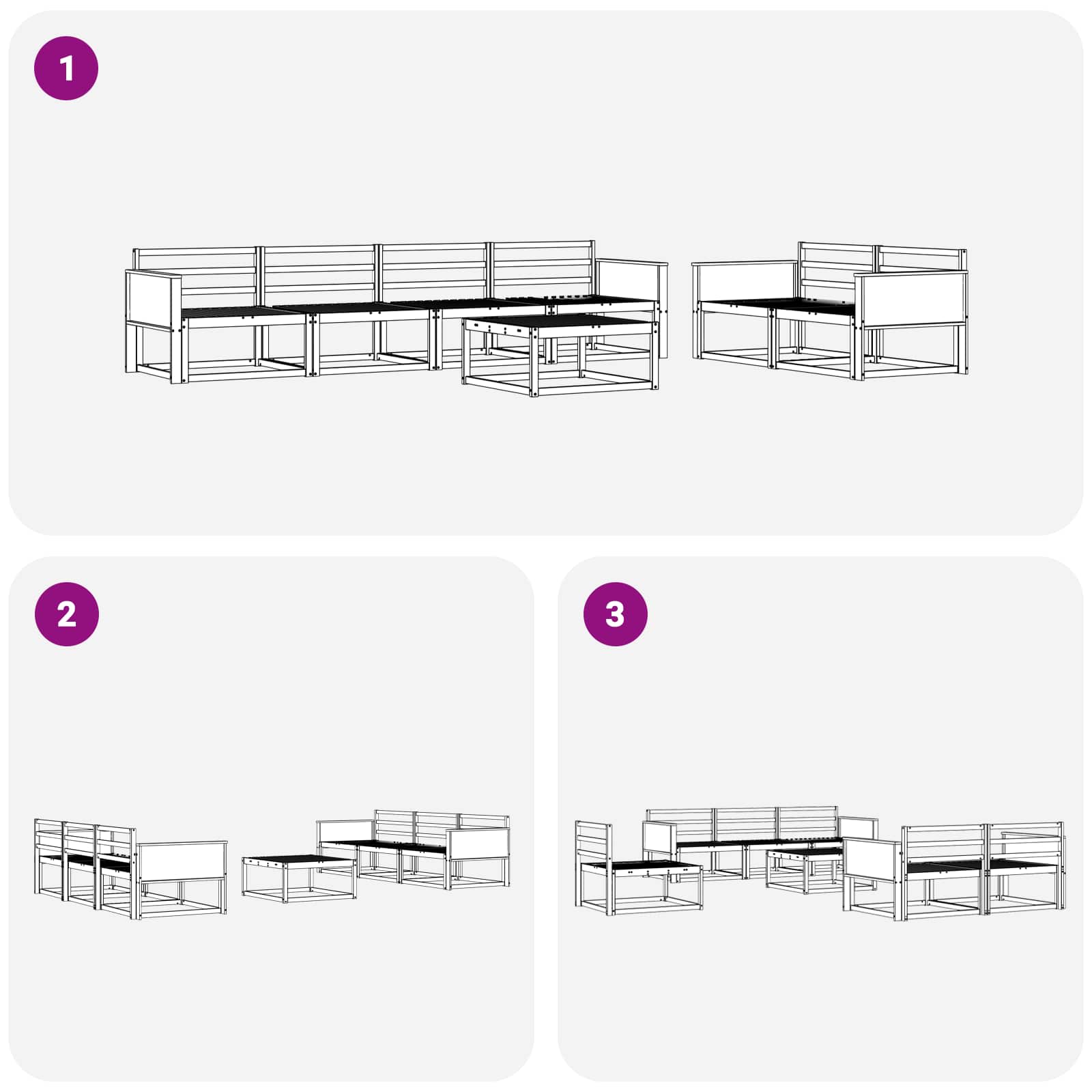 • Huolto & hoito: Pidä setti parhaimmillaan välttämällä suoraa auringonvaloa ja suojaamalla se, kun et käytä sitä. Pyyhi pinnat säännöllisesti kostealla liinalla, jotta ne pysyvät hyvänä ja varmistavat, että se on ulkotilan keskeinen huonekalu pitkään.