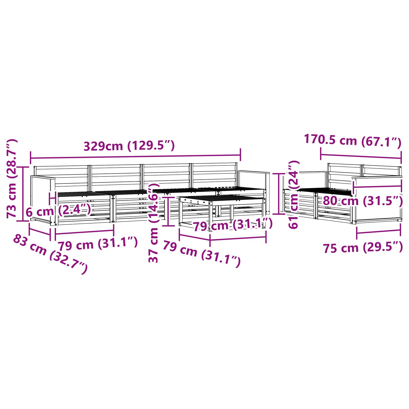 • Säänkestävä muotoilu: Tämä ulkosohvasetti on lakattu, mikä suojaa sitä auringolta, kevyeltä sateelta ja muilta sääolosuhteilta. Kiiltävä viimeistely suojaa ulkonäköä ja parantaa käytettävyyttä, varmistaen pitkän käyttöiän puutarhassa, terassilla tai takapihalla.