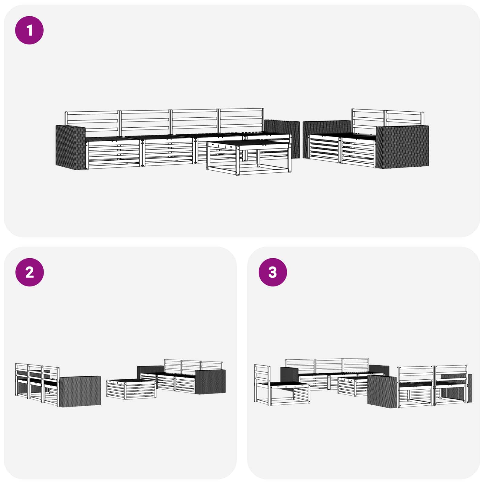 • Mukavuus ja monipuolisuus: Modulaarinen muotoilu mahdollistaa joustavaa järjestelyä eri tiloihin ja käyttötarkoituksiin. Tämä setti on täydellinen rentoutumiseen, sosiaalisiin kokoontumisiin tai rauhalliseen lukuhetkeen, sillä se sopeutuu vaivatta mihin tahansa ulkotilaan maksimoiden mukavuuden ja käytettävyyden.