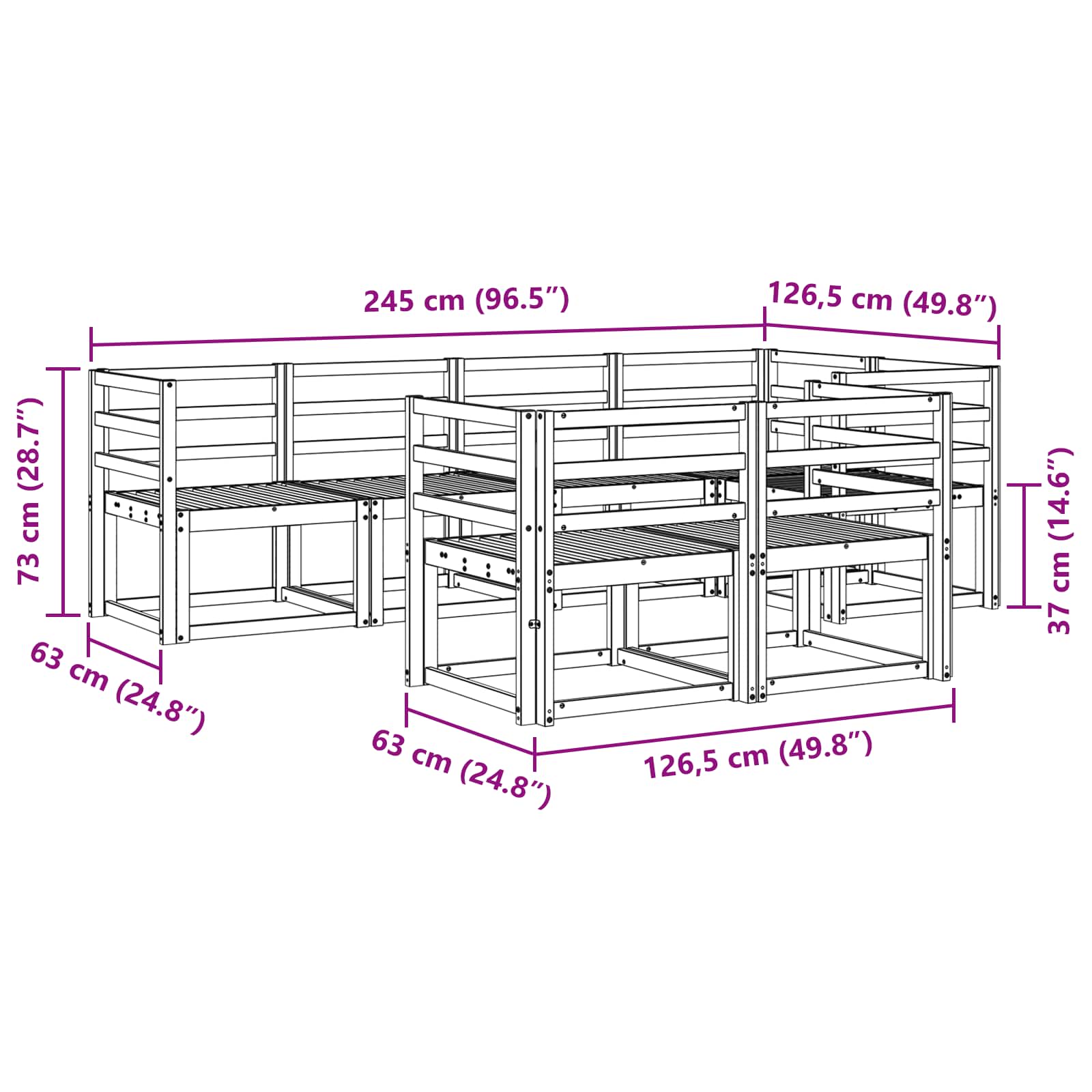 • 4 x Käsinoja: 59 x 4 x 73 cm (P x L x K)
