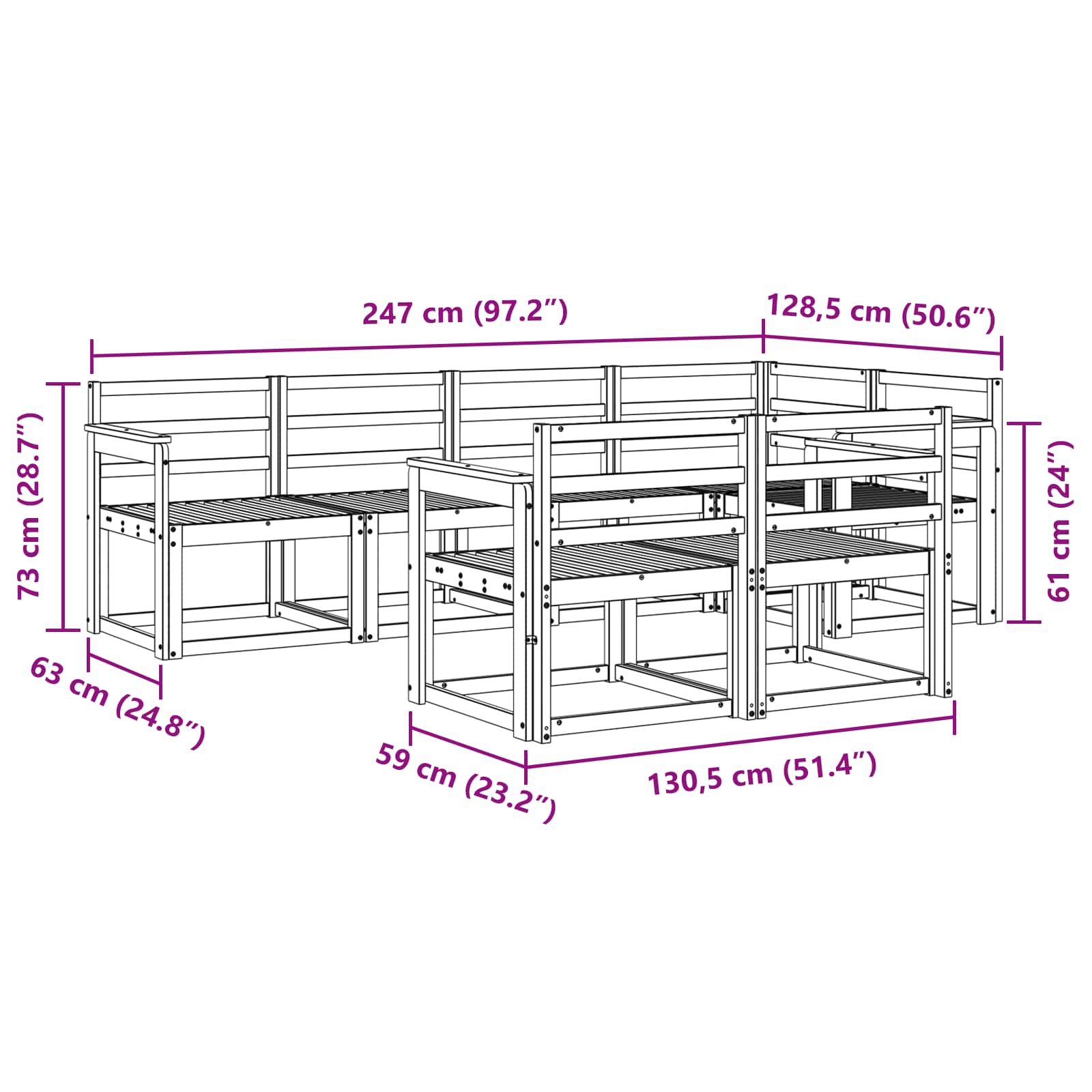 • 6 x Keskisohva: 59 x 63 x 73 cm (P x L x K)