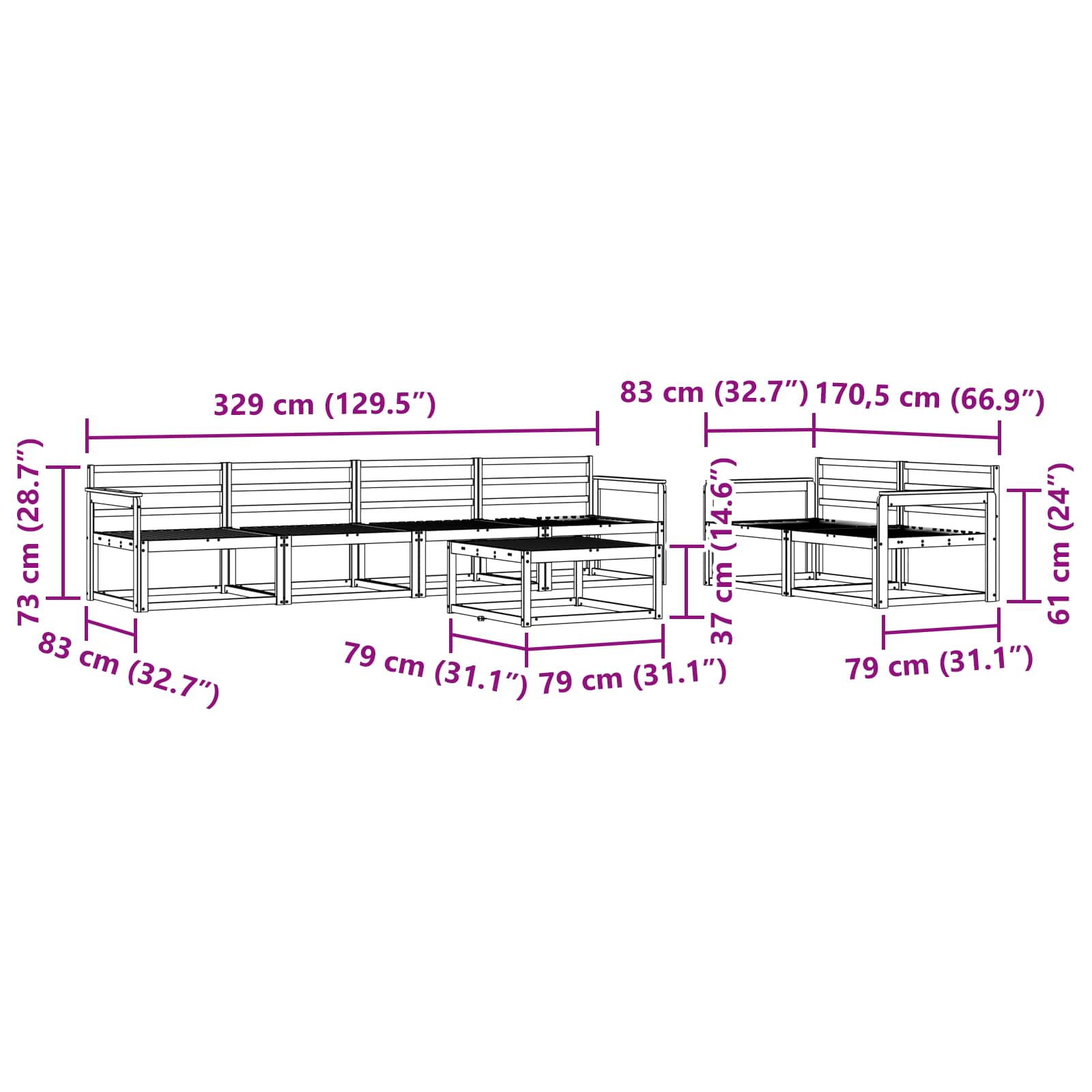 Ulkosohvakokoelma 7 pcs Luonnollinen Tiheä akasiapuu