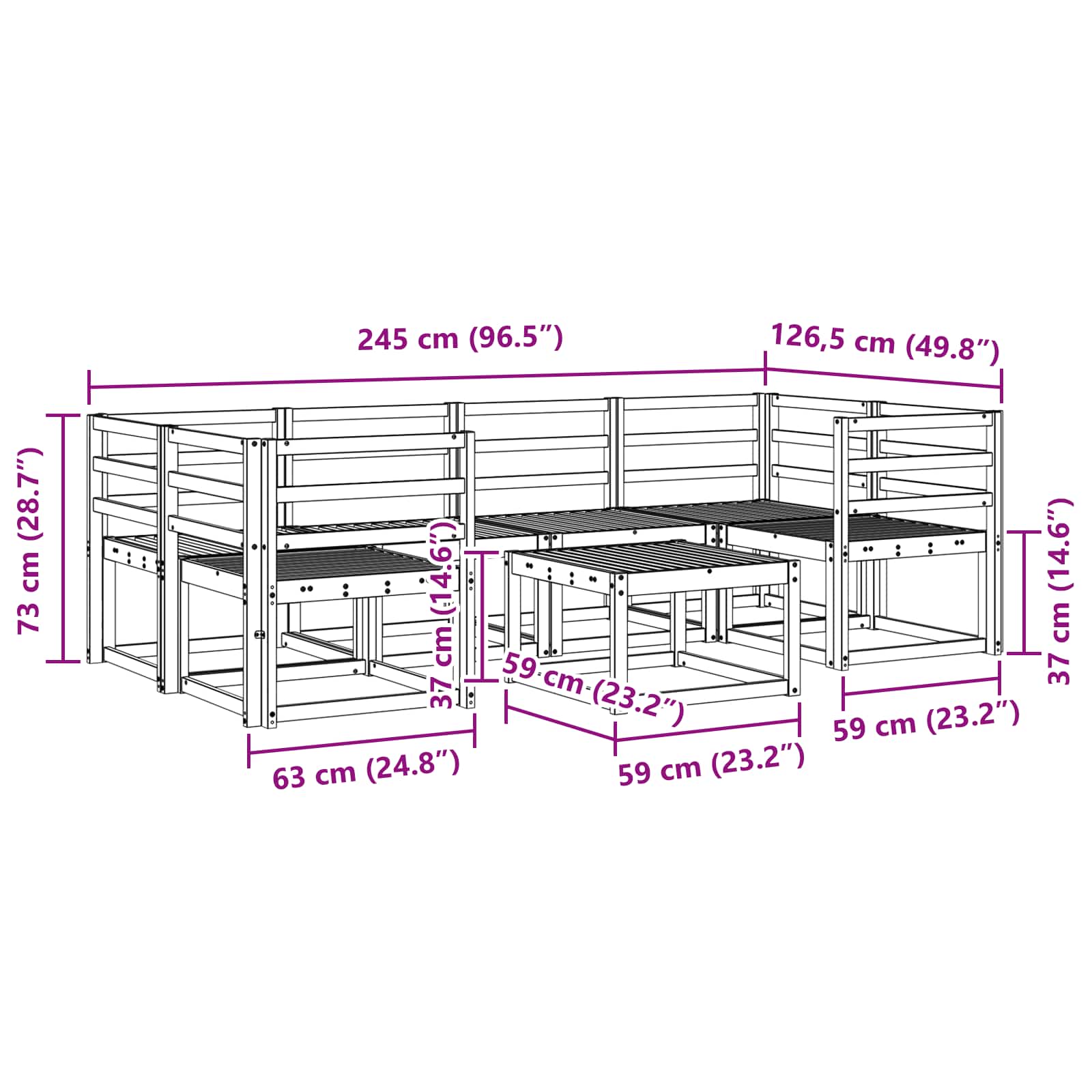 • 4 x Keskisohva: 59 x 63 x 73 cm (P x L x K)