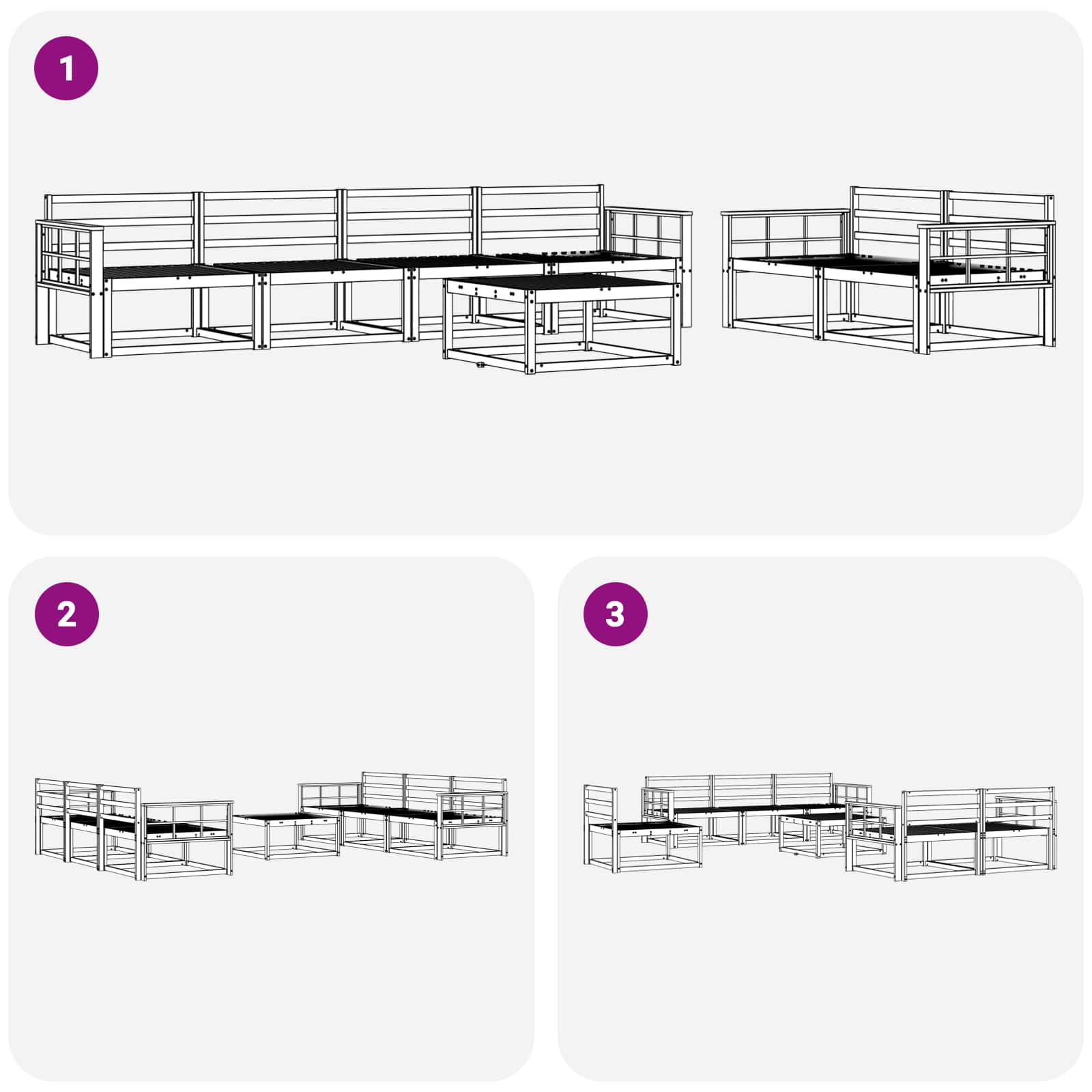 • Huolto & hoito: Pidä setti parhaimmillaan välttämällä suoraa auringonvaloa ja suojaamalla se, kun et käytä sitä. Pyyhi pinnat säännöllisesti kostealla liinalla, jotta ne pysyvät hyvänä ja varmistavat, että se on ulkotilan keskeinen huonekalu pitkään.
