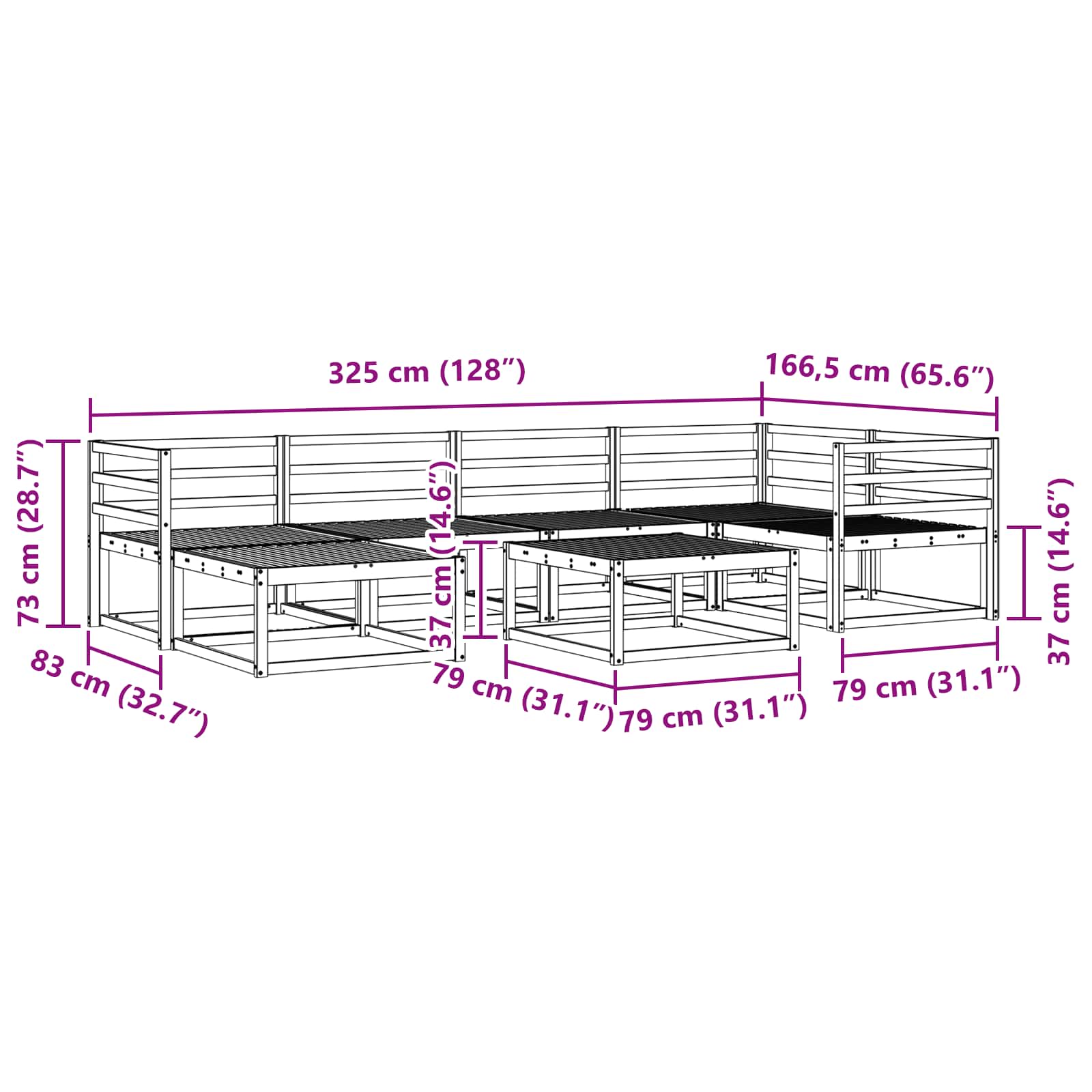 • 4 x Keskisohva: 79 x 83 x 73 cm (P x L x K)
