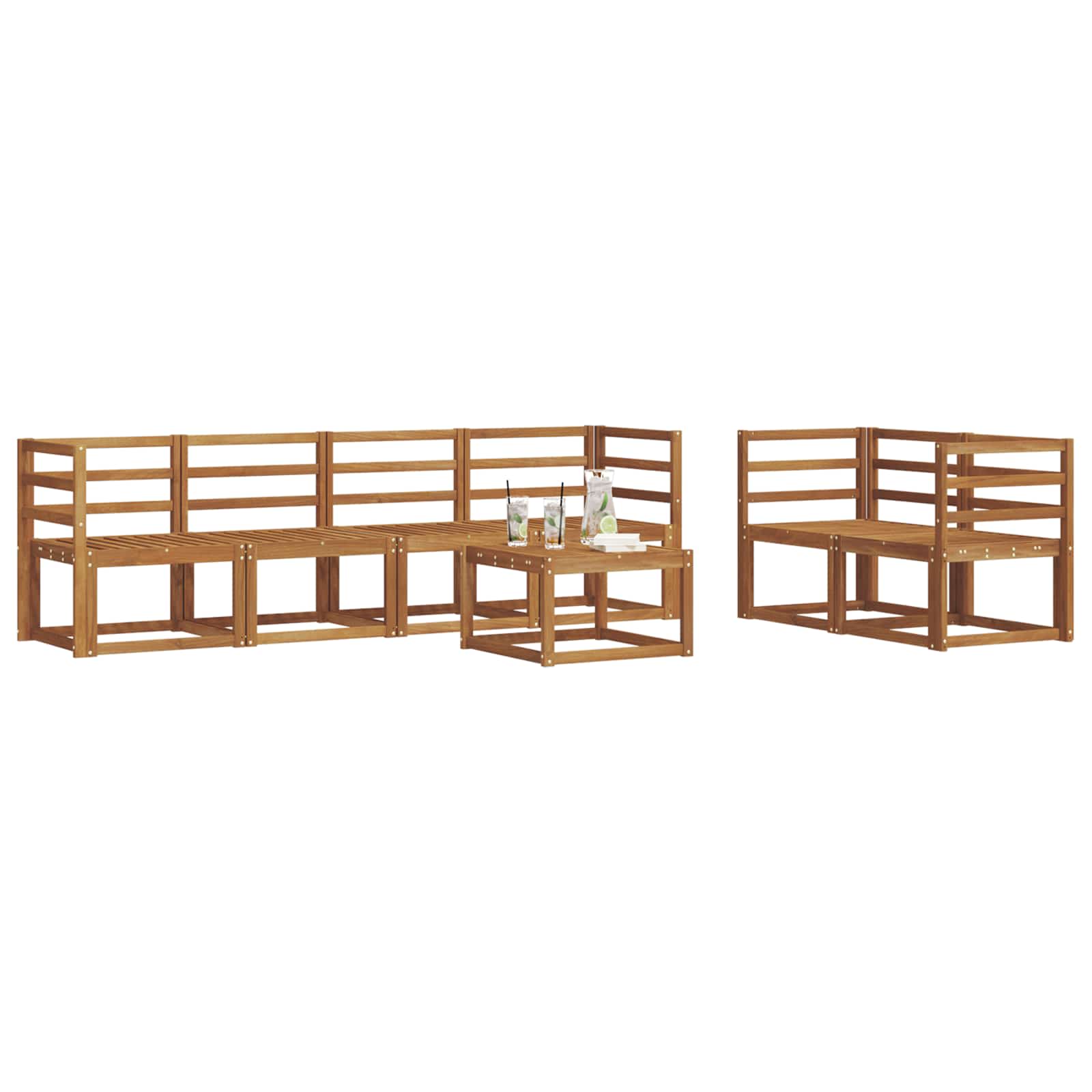 Ulkosohvakokoelma 7 pcs Luonnollinen Tiheä akasiapuu