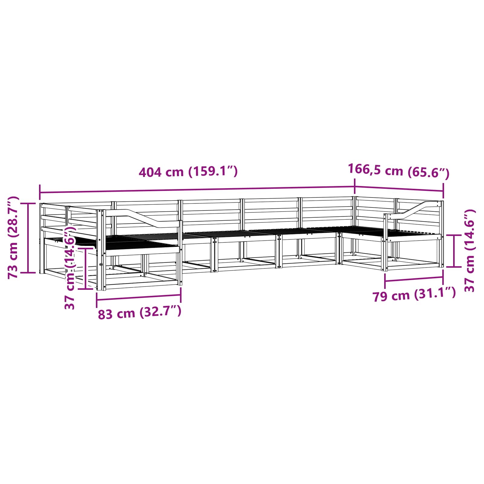 • Yleiset mitat: 404 x 166,5 x 73 cm (P x L x K)