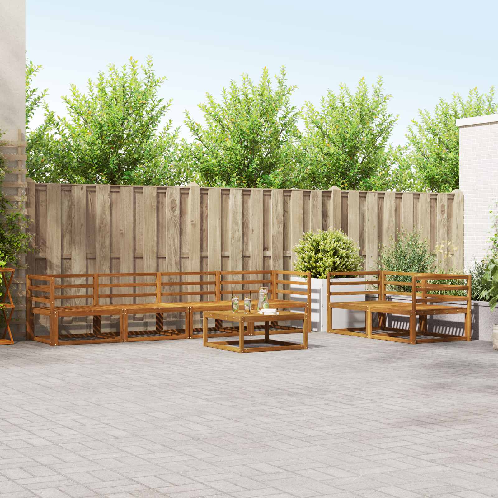 Ulkosohvakokoelma 7 pcs Luonnollinen Tiheä akasiapuu