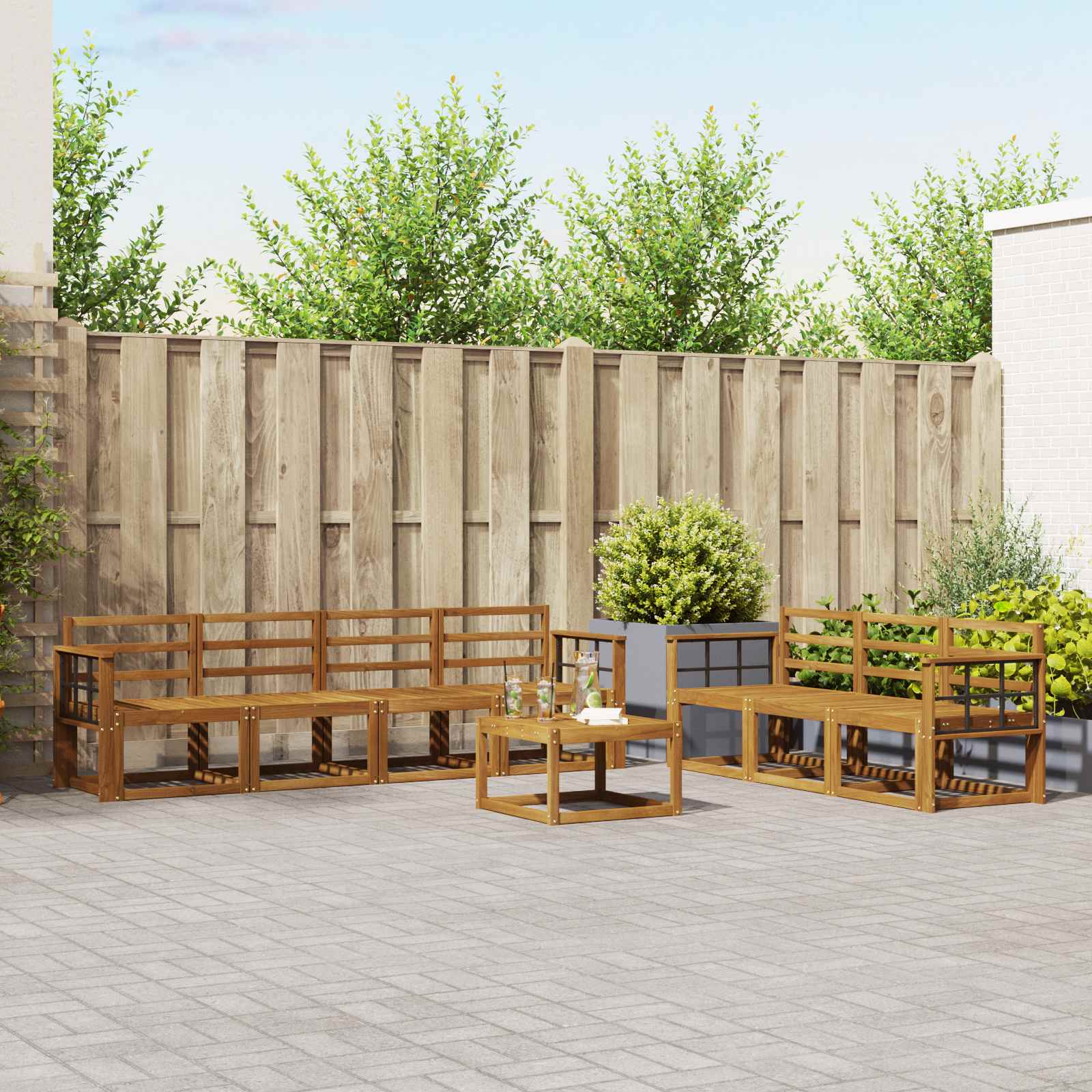• Kestävä akaasiapuu: Tää setti on tehty kestävästä akaasiapuusta, joka kestää sään vaihtelut. Vankka rakenne tuo tukea ja tyyliä puutarhaan.