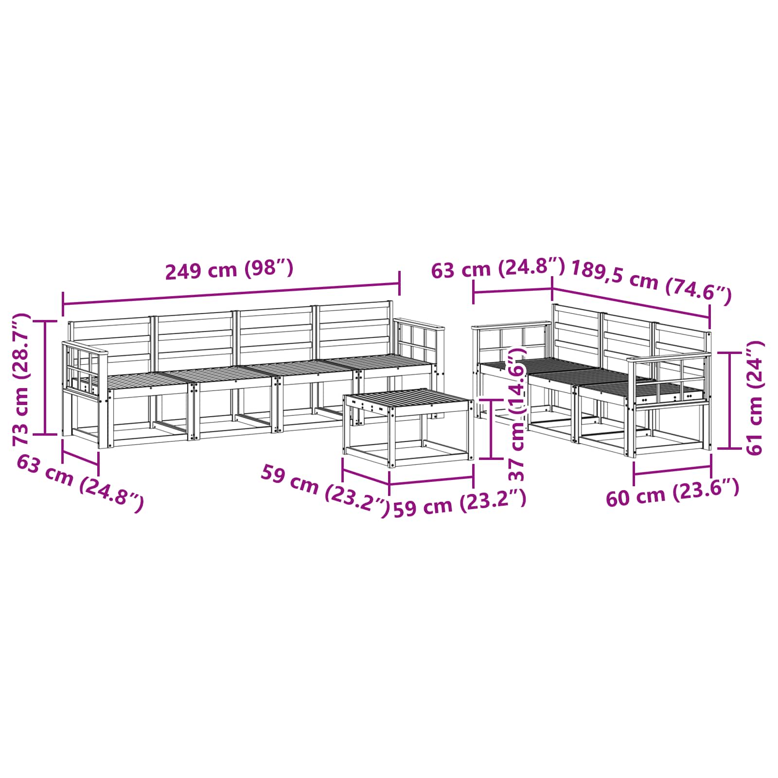 • 7 x keskikokoista sohvaa: 59 x 63 x 73 cm (P x L x K)