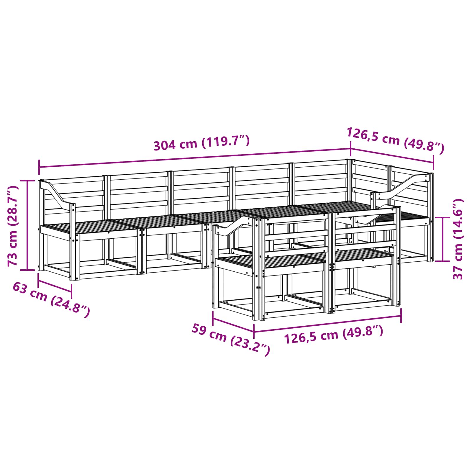 • 7 kpl keskiosaa: 59 x 63 x 73 cm (P x L x K)