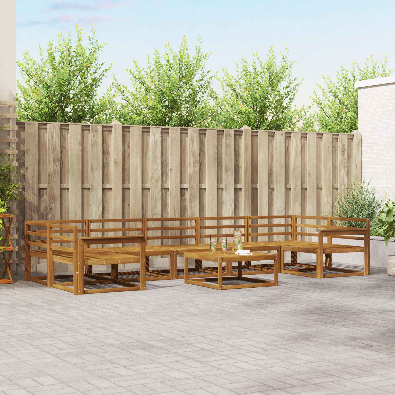 Ulkosohvakokoelma 8 pcs Luonnollinen Tiheä akasiapuu