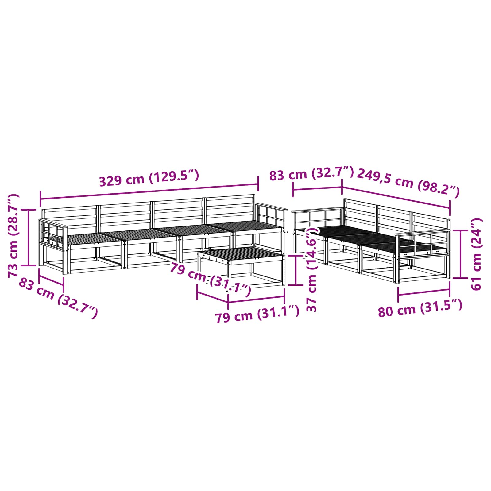 • 7 x Keskipenkki: 79 x 83 x 73 cm (P x L x K)