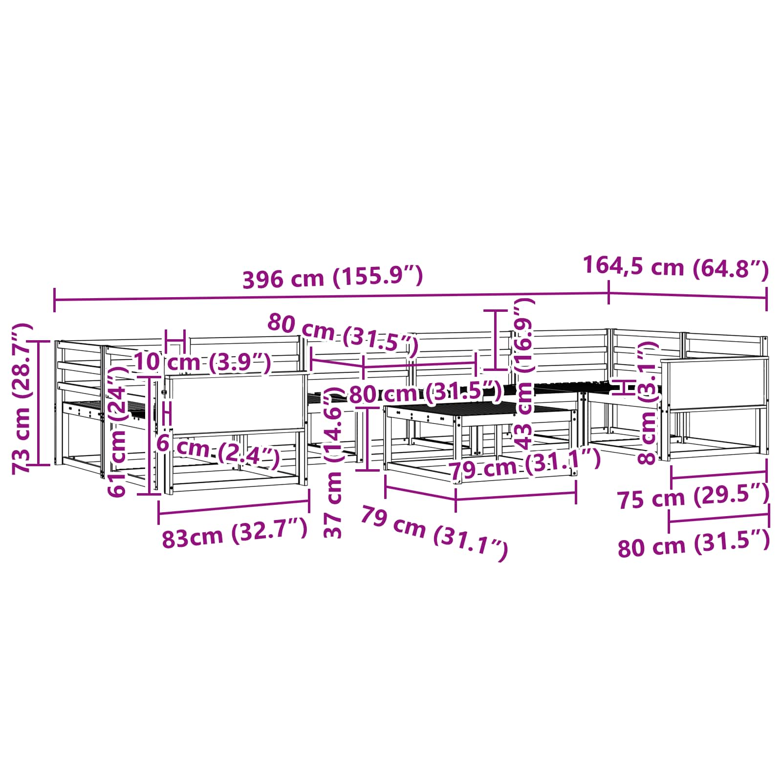 • Sisältö: Setti koostuu tukevista ritiläosista, jotka tarjoavat vakautta, sekä selkänojista, jotka ovat mukavia ja hengittäviä. Kestävästä materiaalista toteutetut käsinojat antavat ergonomista tukea. Nämä osat muodostavat kokonaisuuden, joka muuttaa patioasi tyylikkääksi oleskelutilaksi.