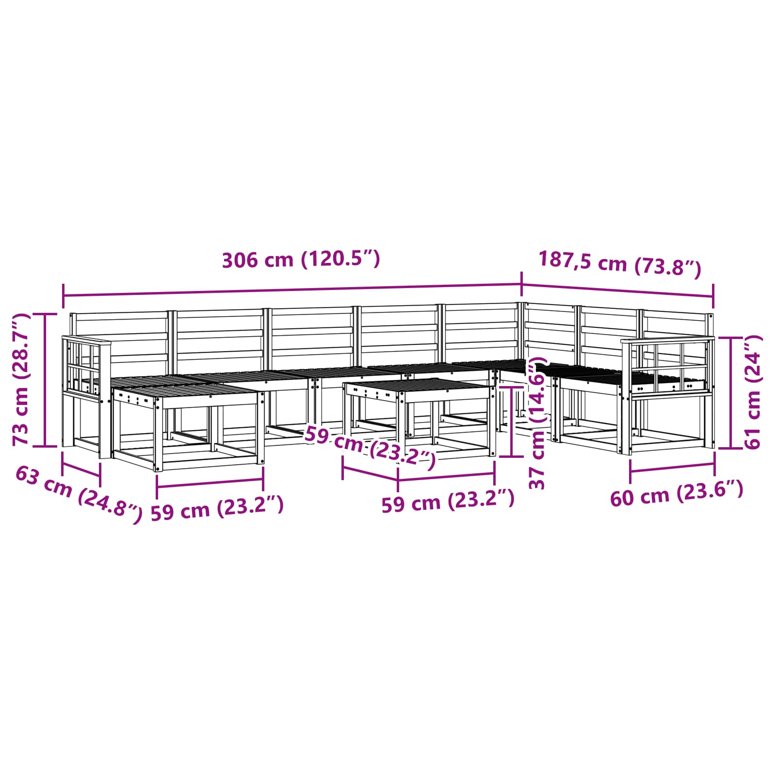 Ulkosohvakokoelma 9 pcs Luonnollinen Tiheä akasiapuu