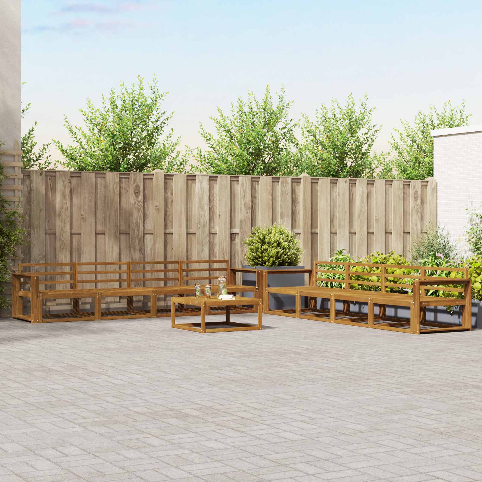 Tämä tyylikäs ulkosohvasetti tekee minkä tahansa puutarhan, patio, takapihan tai uima-altaan viereestä modernin mukavuuden ja tyylin keitaan. Kestävä akaasiapuu on tunnettu pitkäikäisyydestään ja kauniista ilmeestään. Setti esittelee hienostuneen ruskean sävyn ja virtaviivaisen muotoilun, jotka luovat kutsuvan tunnelman rentoutumiseen. Olitpa järjestämässä puutarhajuhlia tai etsimässä rauhallista nurkkausta, tämä sohvasetti yhdistää käytännöllisyyden ja esteettisen viehätysvoiman täydellisesti, tuoden rauhaa ja mukavuutta ulkoilmahetkiisi.