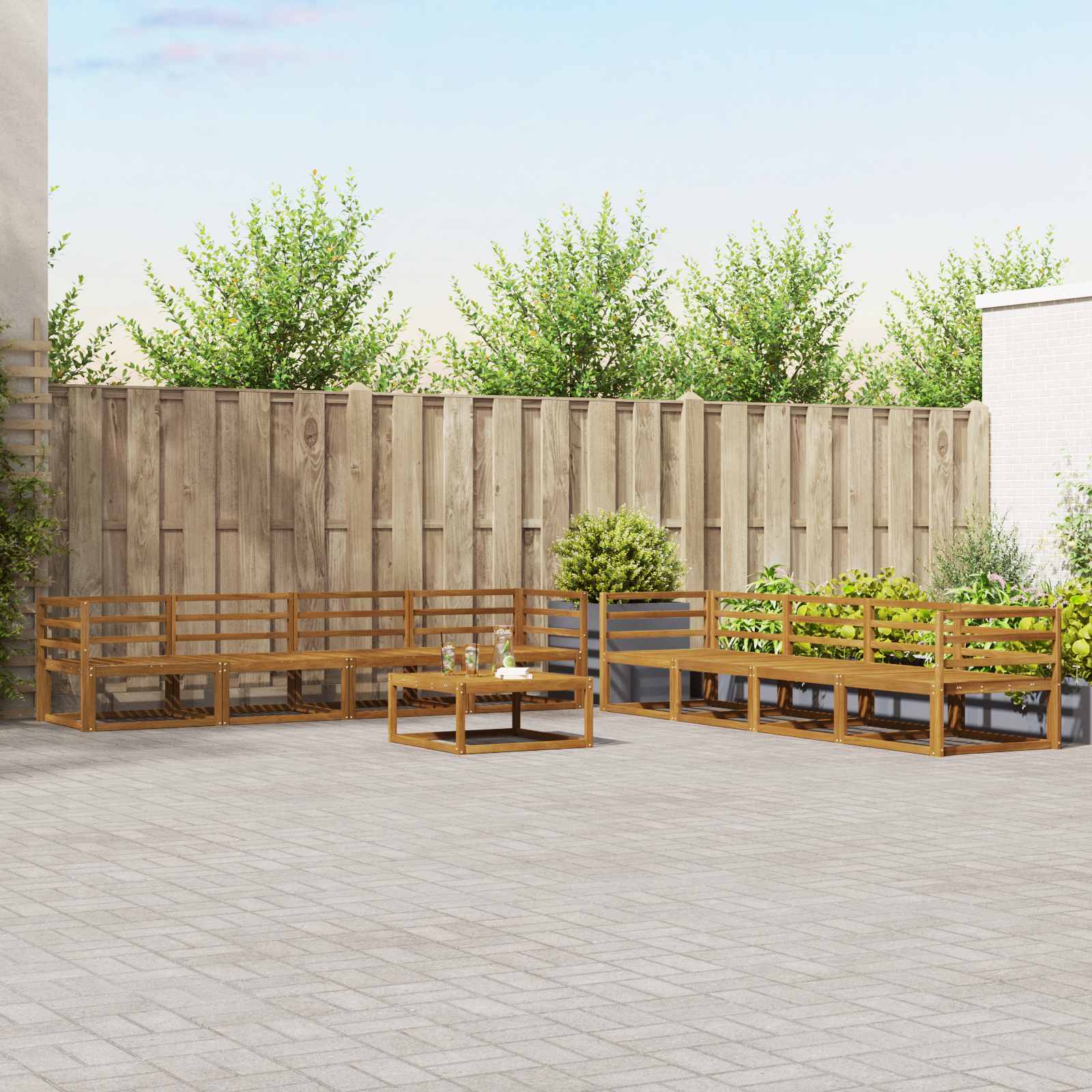 Ulkosohvakokoelma 9 pcs Luonnollinen Tiheä akasiapuu