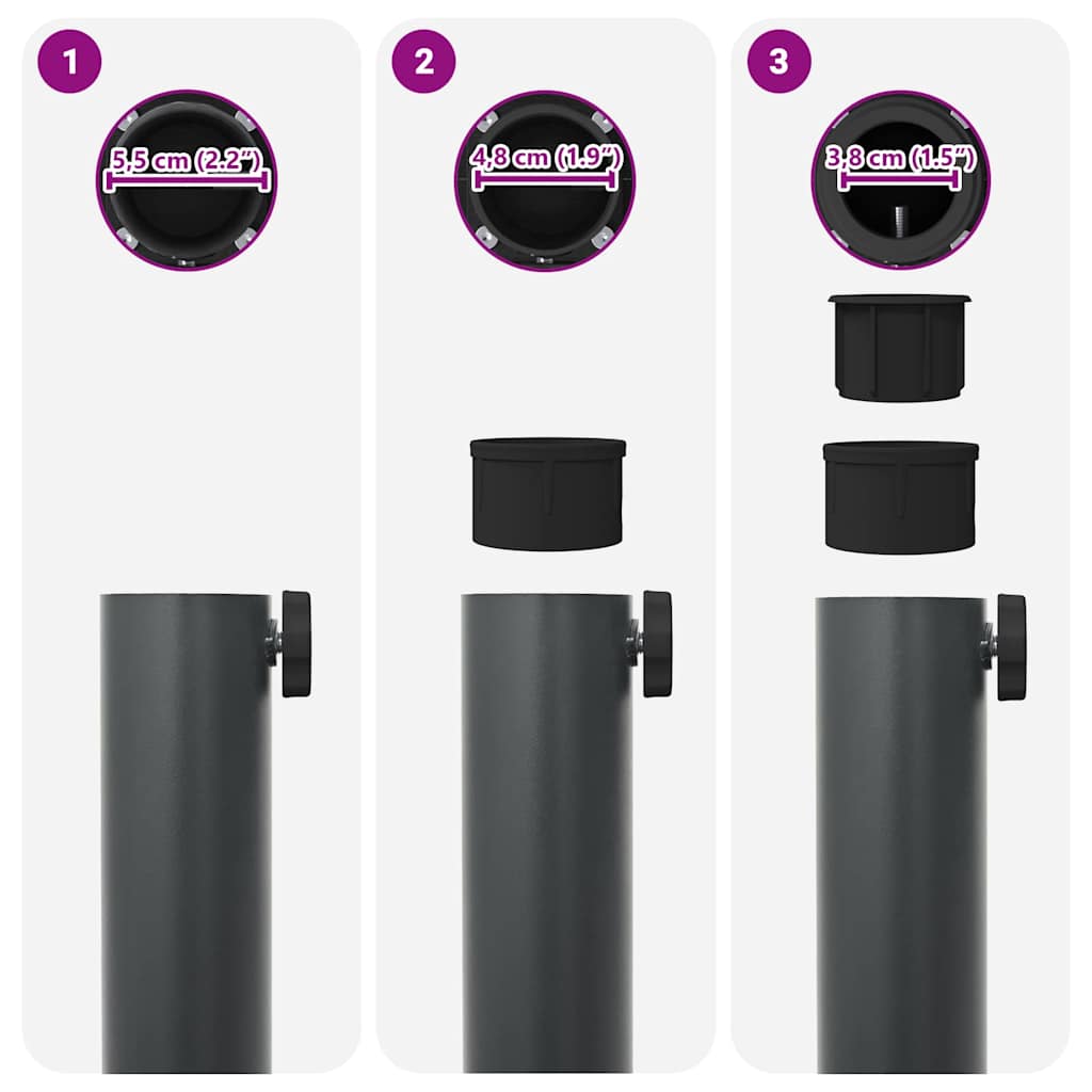 • Vankka teräspohja Tämä jalusta on valmistettu laadukkaasta teräksestä, mikä luo vahvan perustan varjolle. Se on rakennettu kestämään vuodenaikoja ja säilyttää siistin ilmeensä.