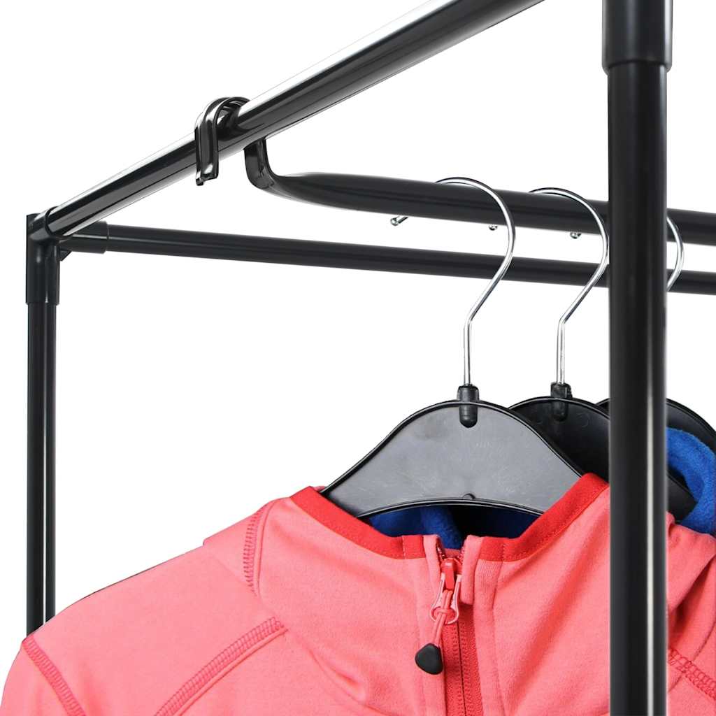Käytännöllinen plug-in-järjestelmä mahdollistaa tämän vaatekaapin asentamisen poraamatta tai ruuvaamatta. Pohjakehys koostuu tukevista rautaputkista, jotka on liitetty toisiinsa liittimillä. Kangaspeite on valmistettu hengittävästä polyesteristä. Vaatekaappi koostuu rungosta ja vaatetelineestä.