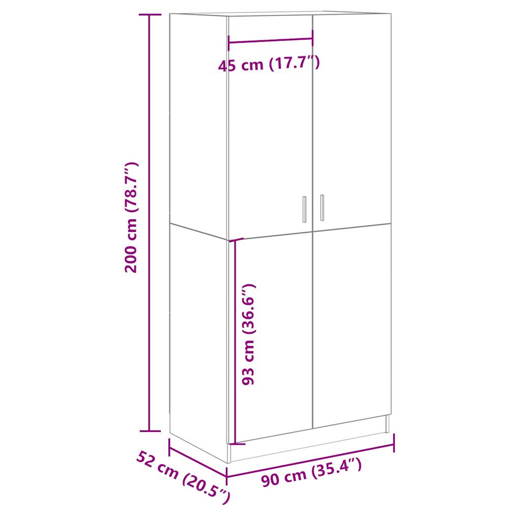 Vaatekaappi käsityöläinen tammi 90x52x200 cm tekninen puu