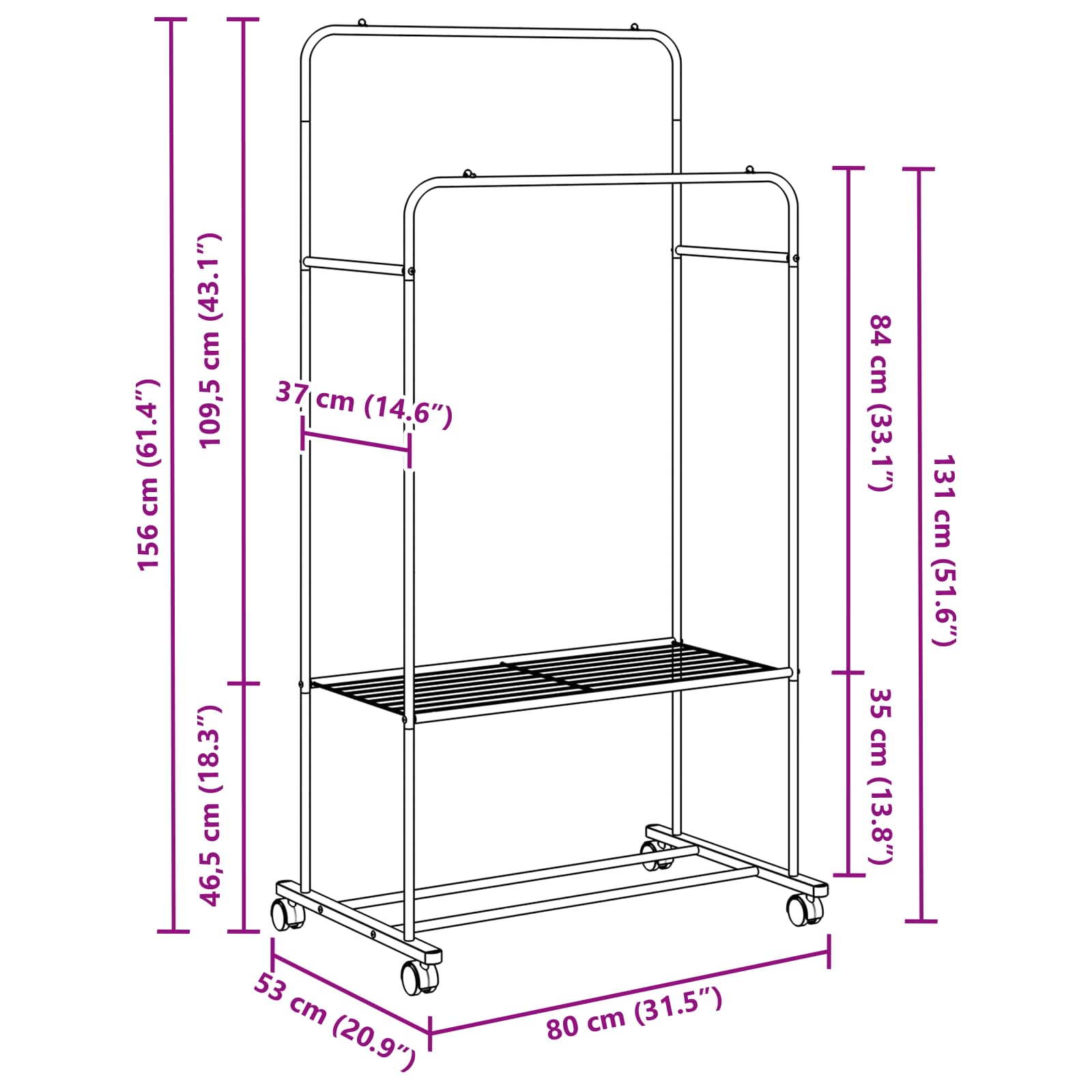 Sujuva metallipinta : Tämä vaatepuu on mattapintainen, mikä tuo vaatteet hienosti esille ilman häiritseviä heijastuksia. Kätevät langalliset hyllyt : Langallinen mesh-hylly tarjoaa täydellisen tuen kengille ja asusteille, helpottaen tavarasi järjestämistä. Yksinkertainen ja toiminnallinen tyyli : Nykyaikainen muotoilu, jossa on siistit linjat, tuo tyylikkyyttä mihin tahansa huoneeseen. Käteen sopiva : Helppo siirtää, ja sen kannettavuus tekee siitä loistavan dynaamisiin huonejärjestelyihin. Yksinkertainen hoito : Pidä se hyvässä kunnossa pyyhkimällä kostealla liinalla ja vältä ylikuormitusta, niin se kestää pitkään.