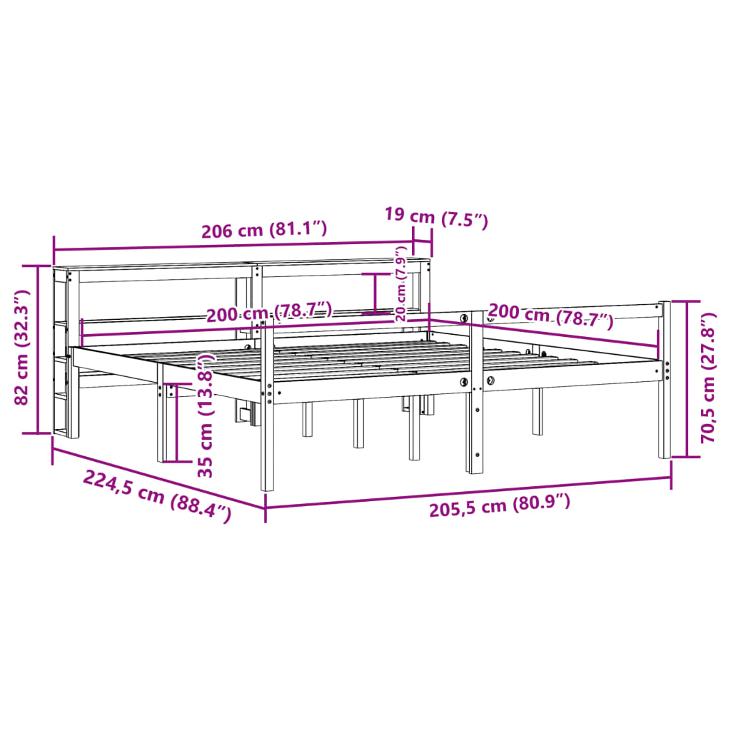 Vanhusten sänky päädyllä 200×200 cm täysi mänty