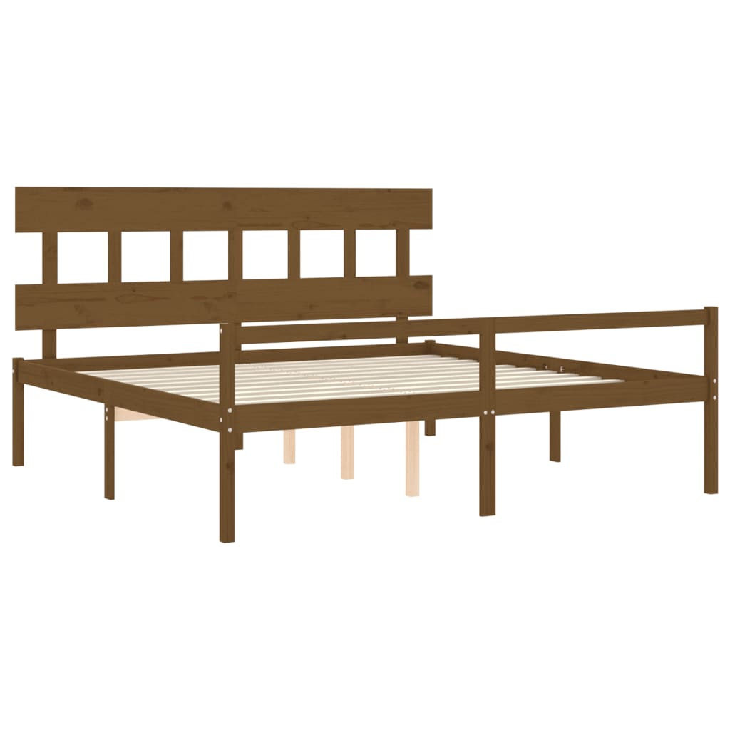 Vanhusten sänky päädyllä hunajanruskea 200×200 cm täysi puu