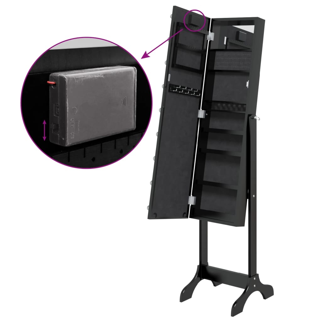 Vapaasti seisova peili LED-valoilla musta 34x37x146 cm