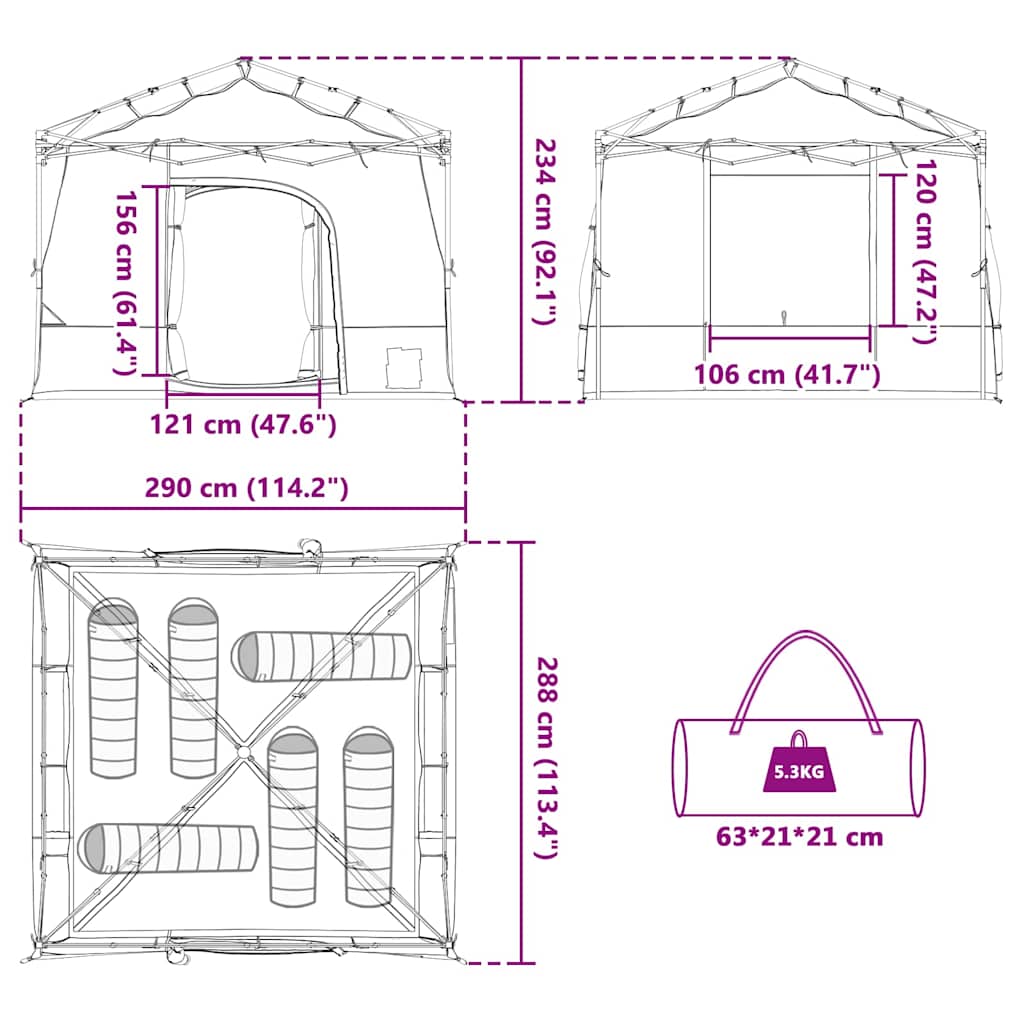 • Monipuolinen käyttö: Tämä teltta on täydellinen kesäleirintään ja muuhun ulkoilmaelämään. Soveltuu hyvin viikonlopun reissuille tai pidemmille luonnossa oleskeluille. Tyylikäs muotoilu näyttää hyvältä missä tahansa pystytät sen.